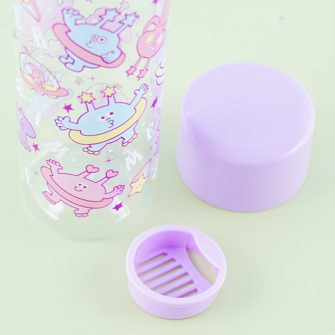 Get instantly refreshed by using this super cute mini bottle with prints of happy-looking aliens floating in space! This transparent water bottle is made of durable resin and has a mouthpiece with a strainer. However, it’s not compatible with both dishwasher and microwave use.