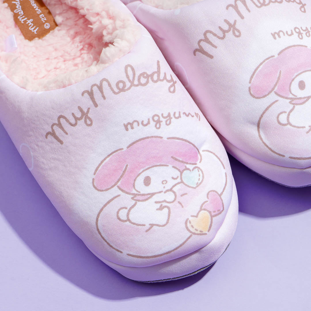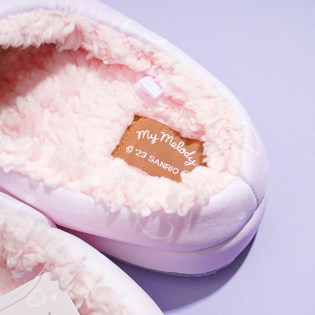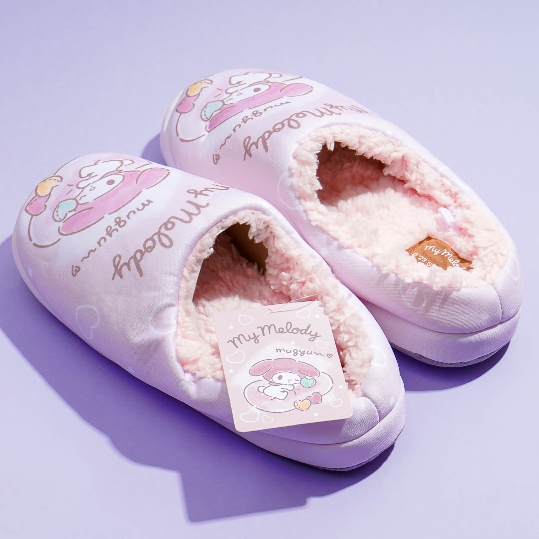 Put on these nice slippers and wear them while relaxing around the house. It features prints of My Melody resting! The inner portion of these slippers is made of material that's super nice, fluffy, and comfy!