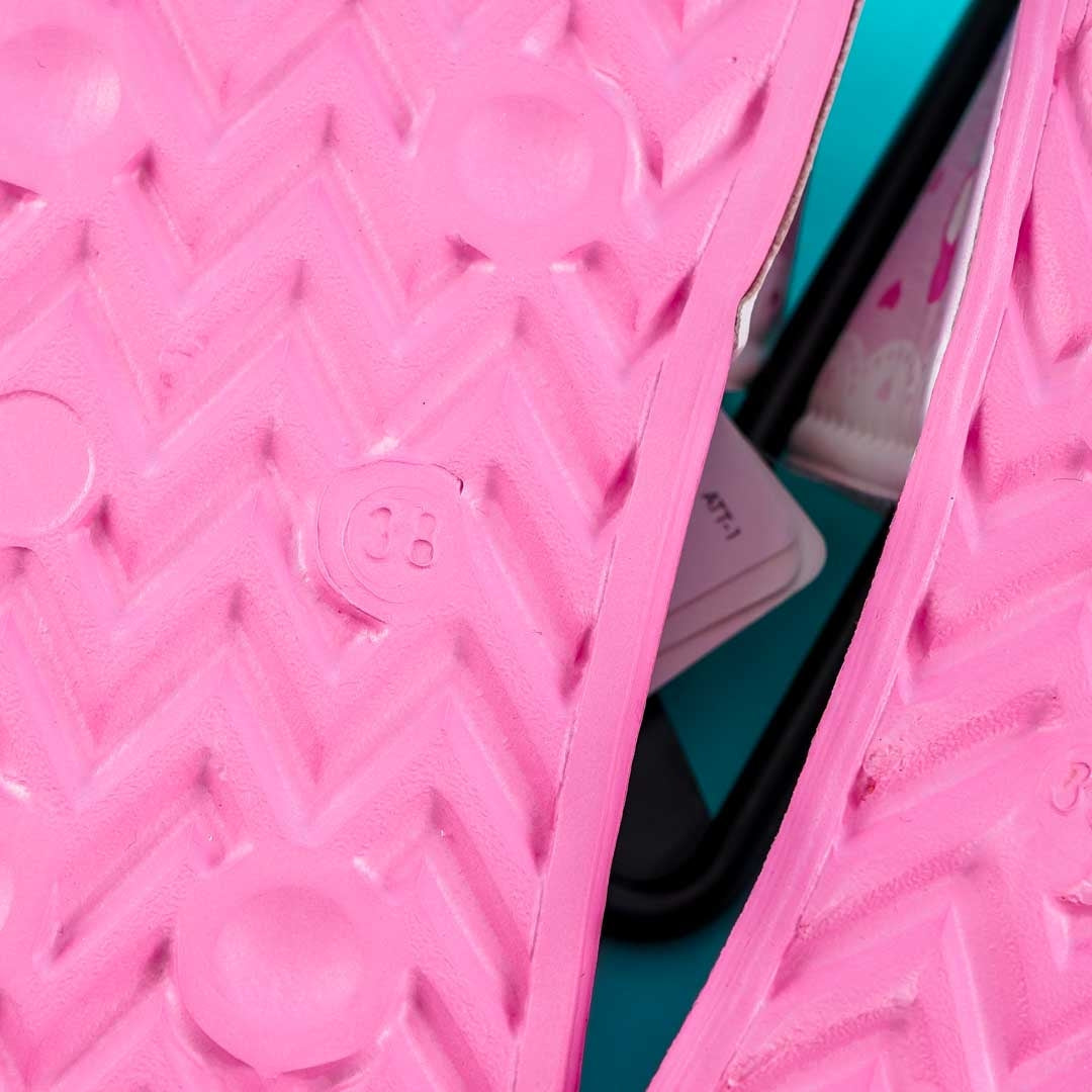 No need to go barefoot in the shower by using this super cute pair of pink slippers! These are made of synthetic resin and come in a large size. The pair is decorated with prints of My Melody, roses, and lace.