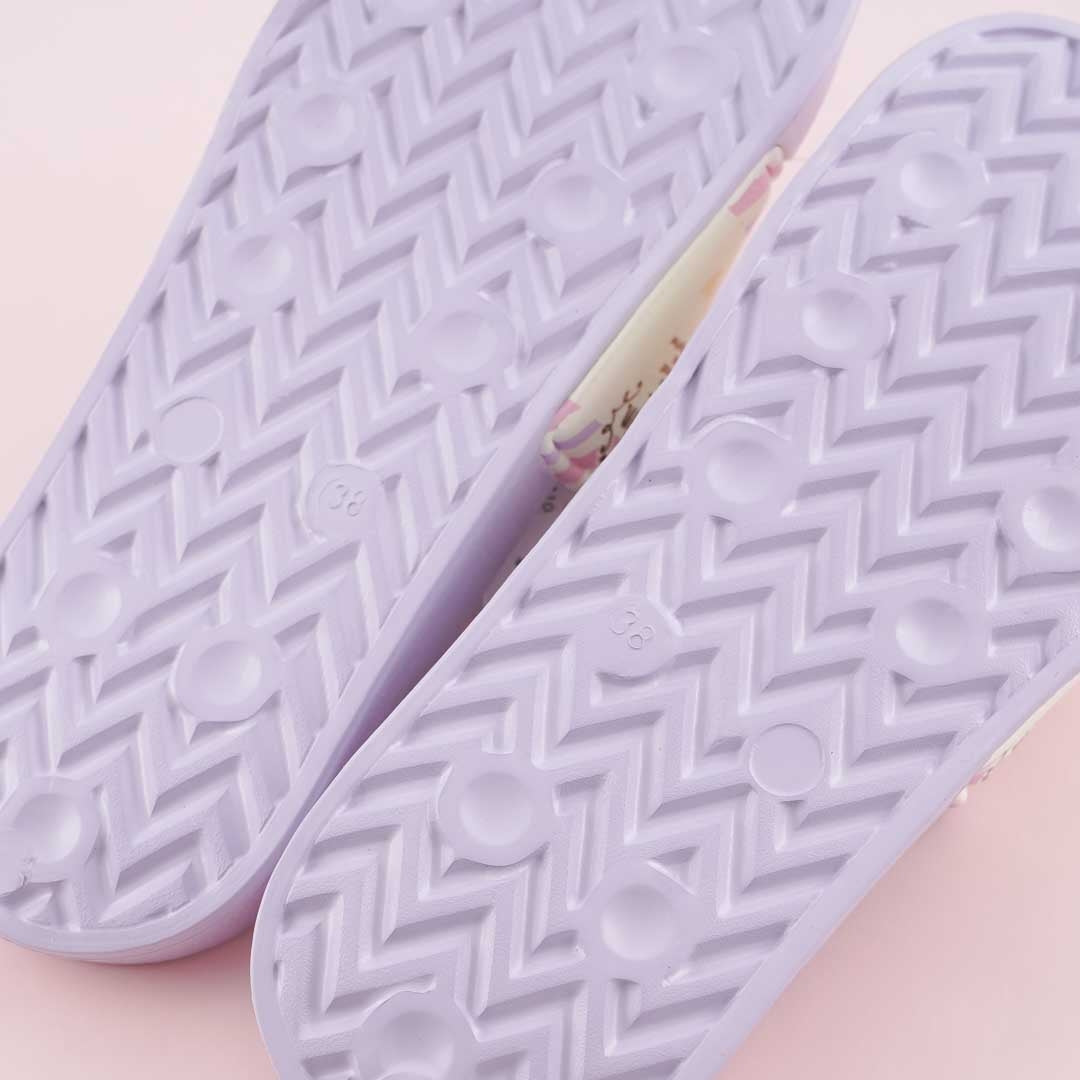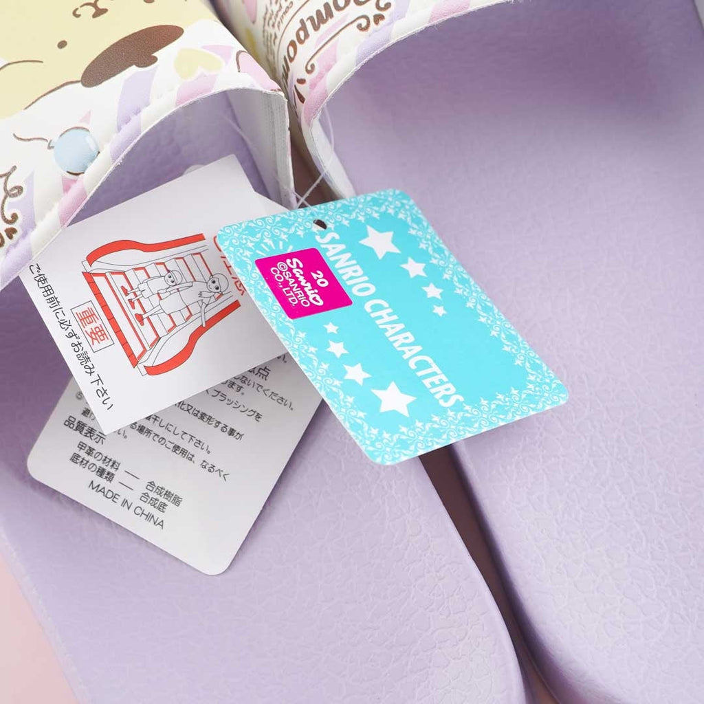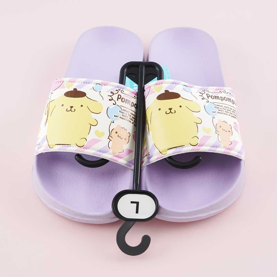 No need to go barefoot indoors if you have this kawaii pair of purple slippers! It features prints of Pompompurin holding pastel-colored balloons! These large slip-ons are made of synthetic resin.