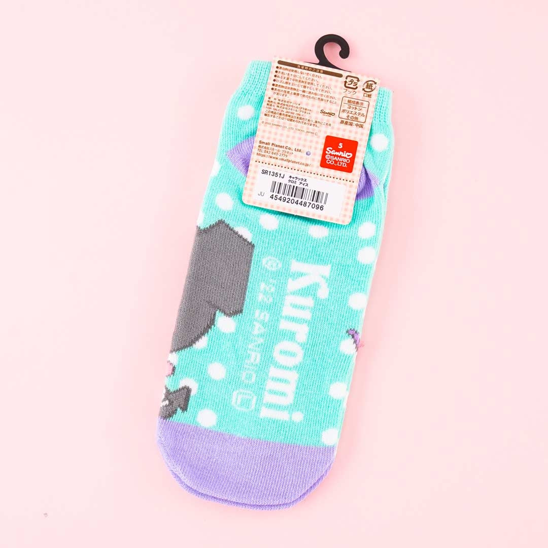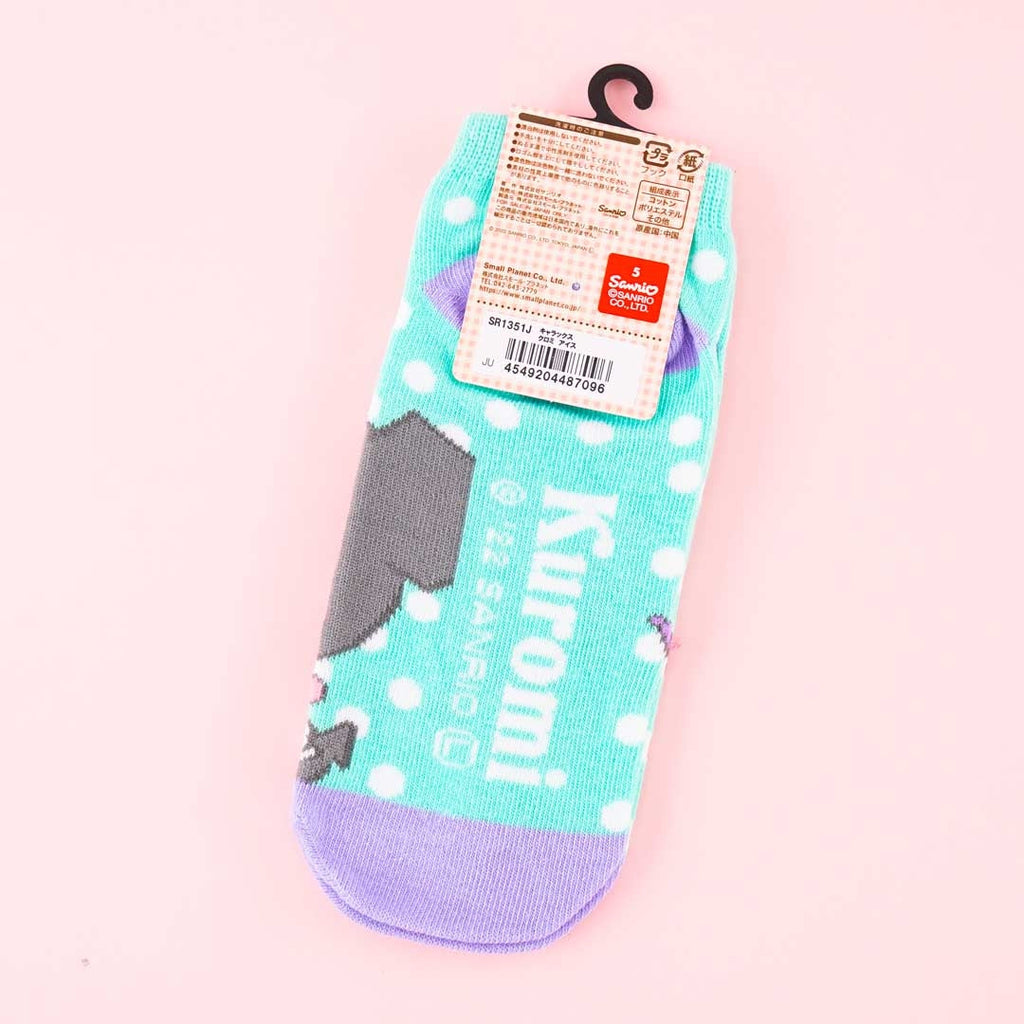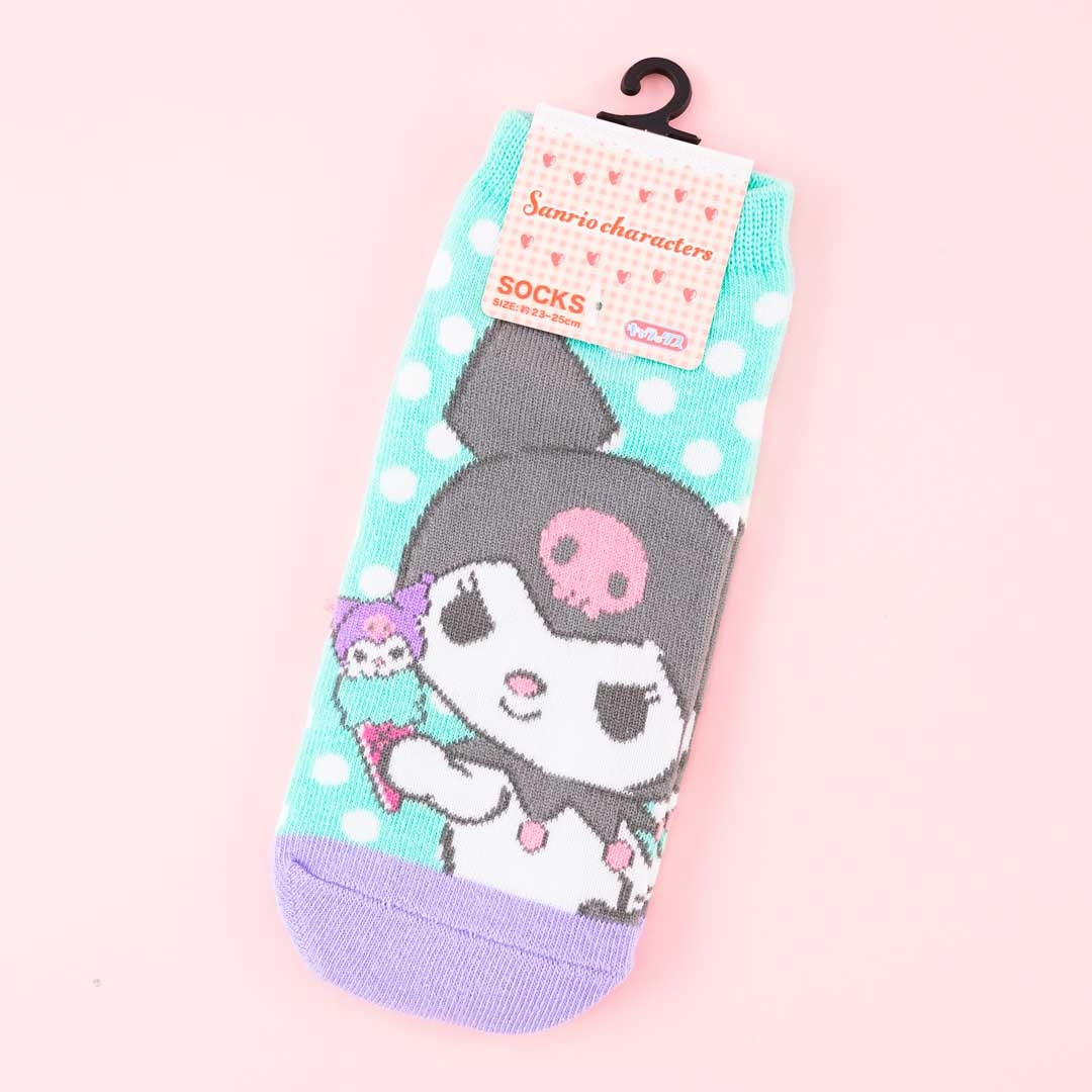 Don't forget to put on these cute dotted socks before wearing your shoes. They're decorated with prints of Kuromi eating an ice cream cone!