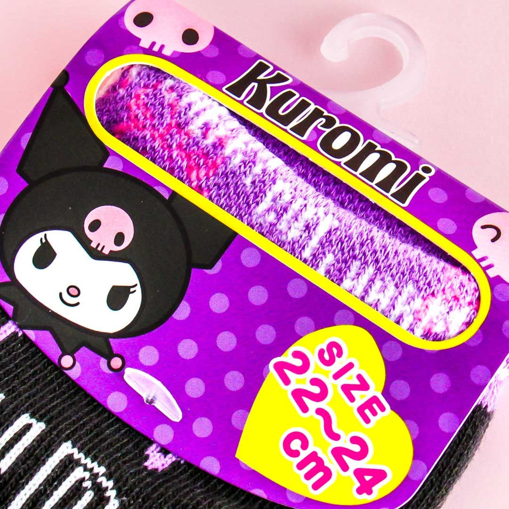 This kawaii pair of socks are made of soft cotton material and features Kuromi the punk rock bunny with twinkling midnight stars. Add a touch of gothic lolita to your outfit by wearing these cute socks!