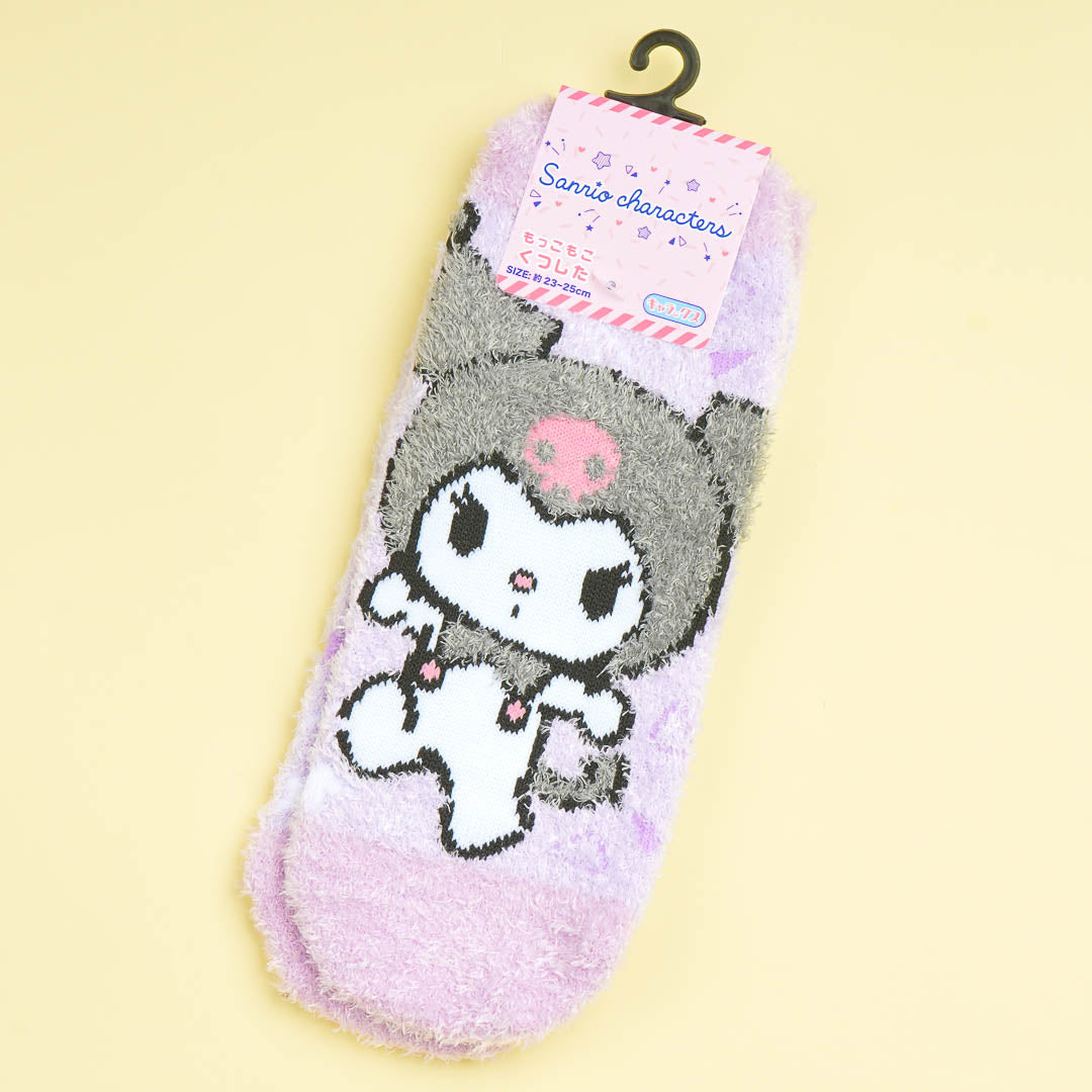This cute pair of socks features a print of Kuromi doing a "yurayura" or swaying dance! It's made from soft and fluffy material so you can wear it on cold days to keep your feet warm.