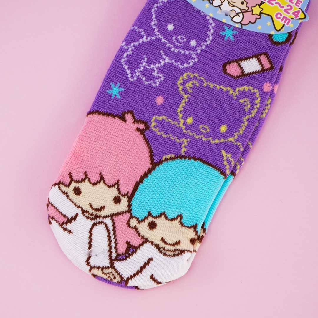 • A pair of kawaii socks illustrated with the Little Twin Stars and their animal friends