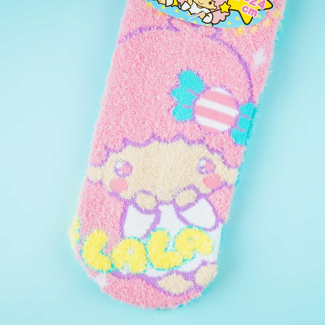 Keep your feet warm and comfy at home with this cute pair of socks featuring Kiki and Lala of the Little Twin Stars. They're made of super soft fluffy material.