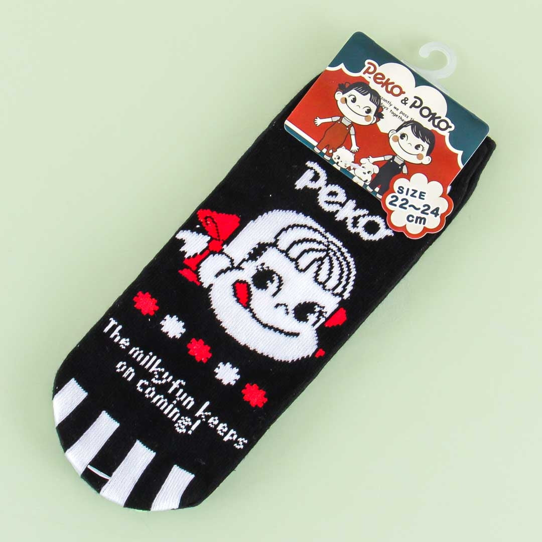Keep your toes warm during cold evenings by wearing this super cute pair of socks! It’s made of soft cotton material, has thick stripes, and features Milky candy’s Peko-chan.