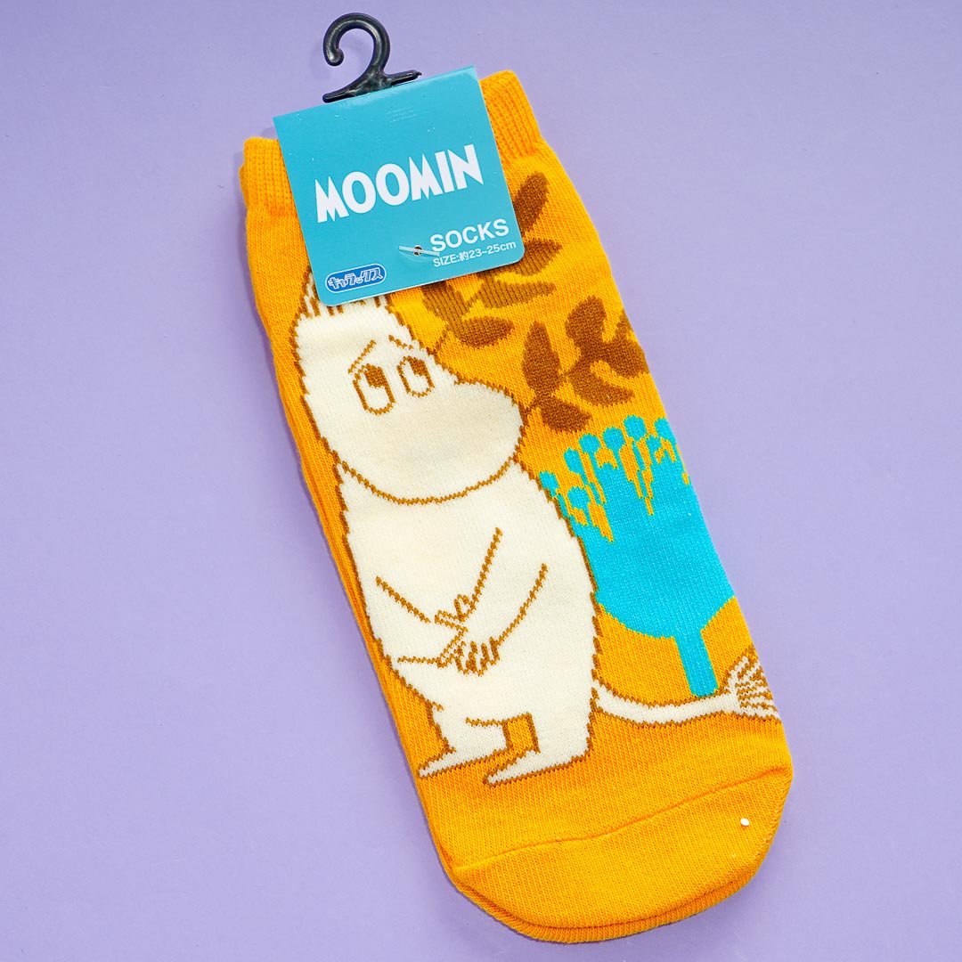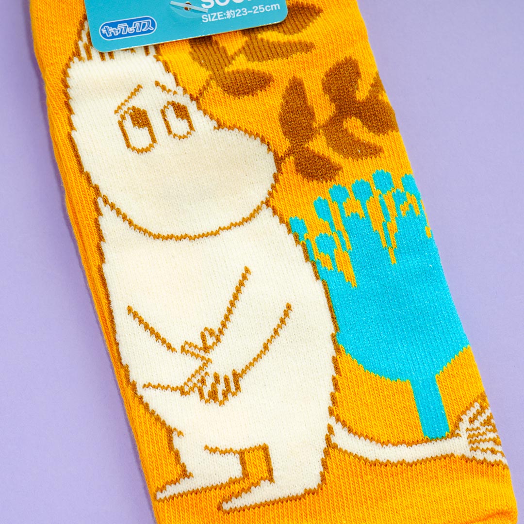 Keep your toes comfy with these kawaii socks! This cute pair features illustrations of Moomintroll with plants.
