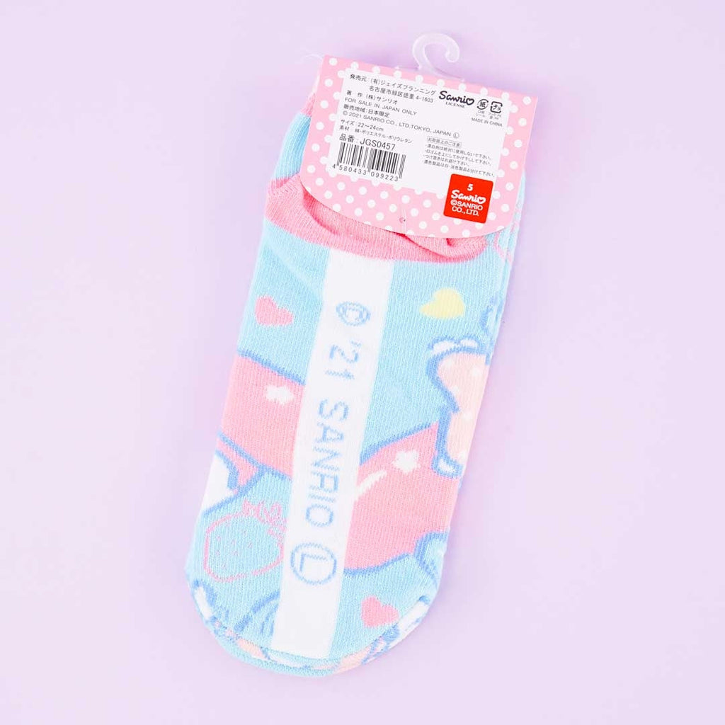 This cute pair of socks is illustrated with My Melody chatting away on the phone. Wear them before putting on your shoes! It has a lining made with antibacterial specifications.