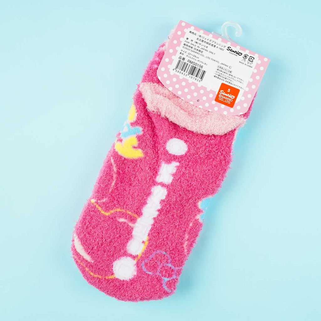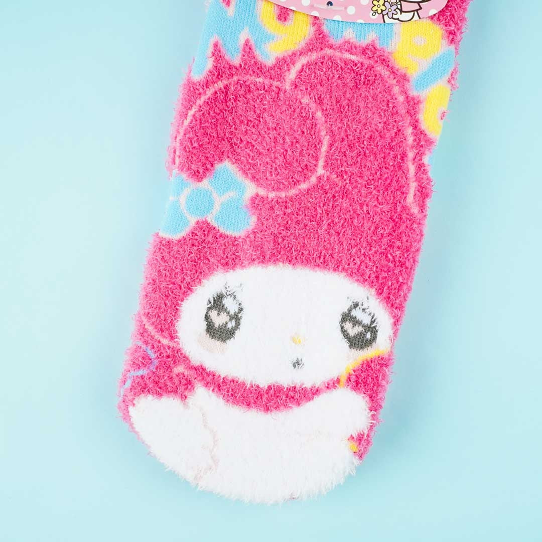 Keep your feet dry and comfortable with these adult socks illustrated with prints of My Melody! These fuzzy socks can fit most women's sizes.