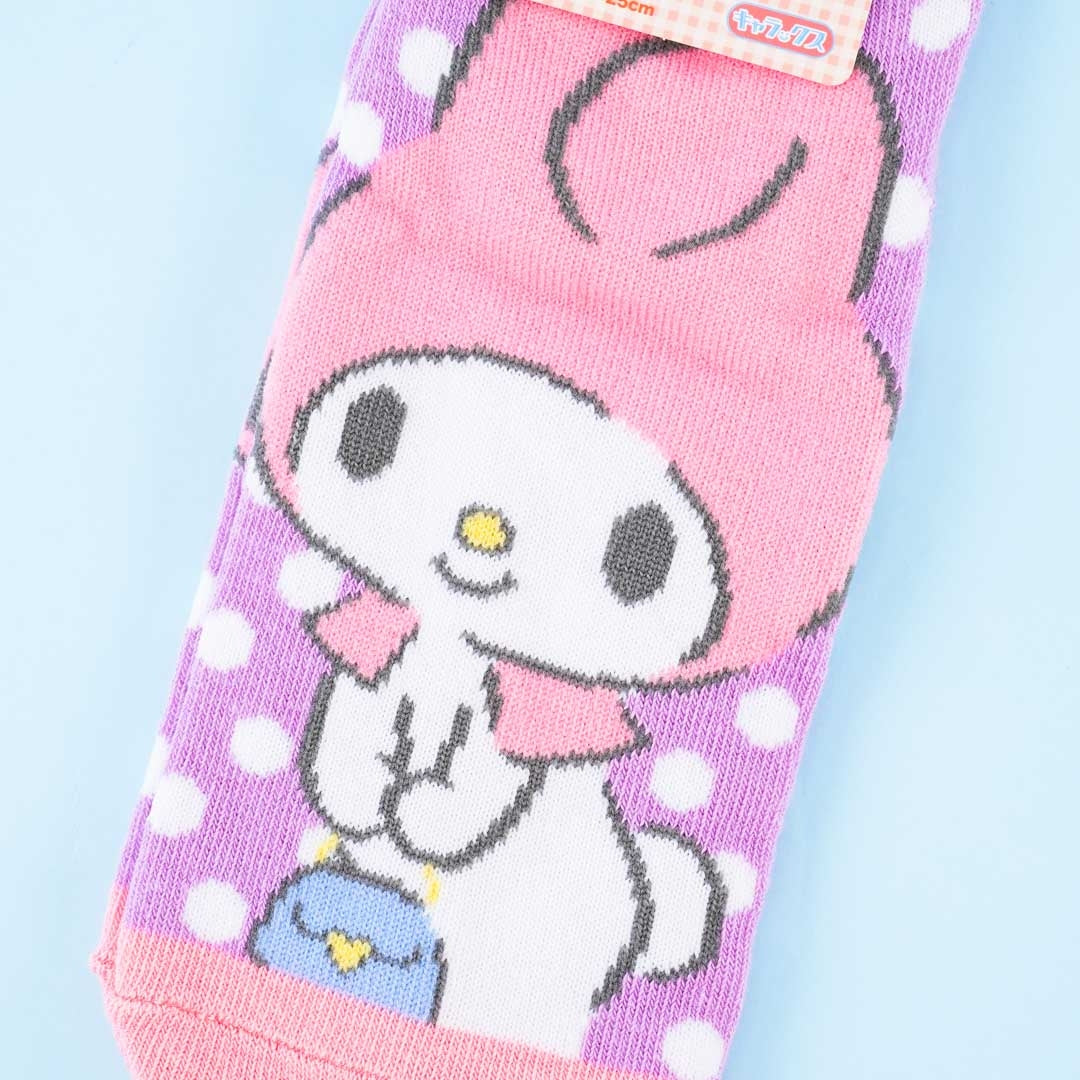 Complete your kawaii outfit by wearing these cute dotted socks! They feature a print of My Melody holding a purse.