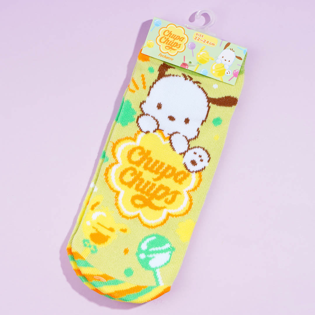 Keep your feet warm especially during bedtime using these super cute socks! This kawaii pair features prints of Pochacco and the iconic logo of Chupa Chups lollipops.