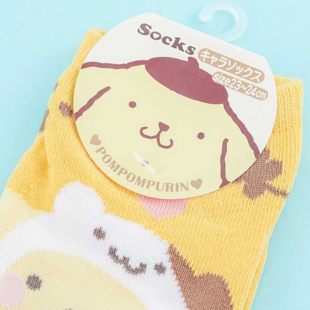Keep your feet warm and kawaii using this soft pair of socks! These lightweight socks are illustrated with prints of Pompompurin in a super cute onesie outfit.