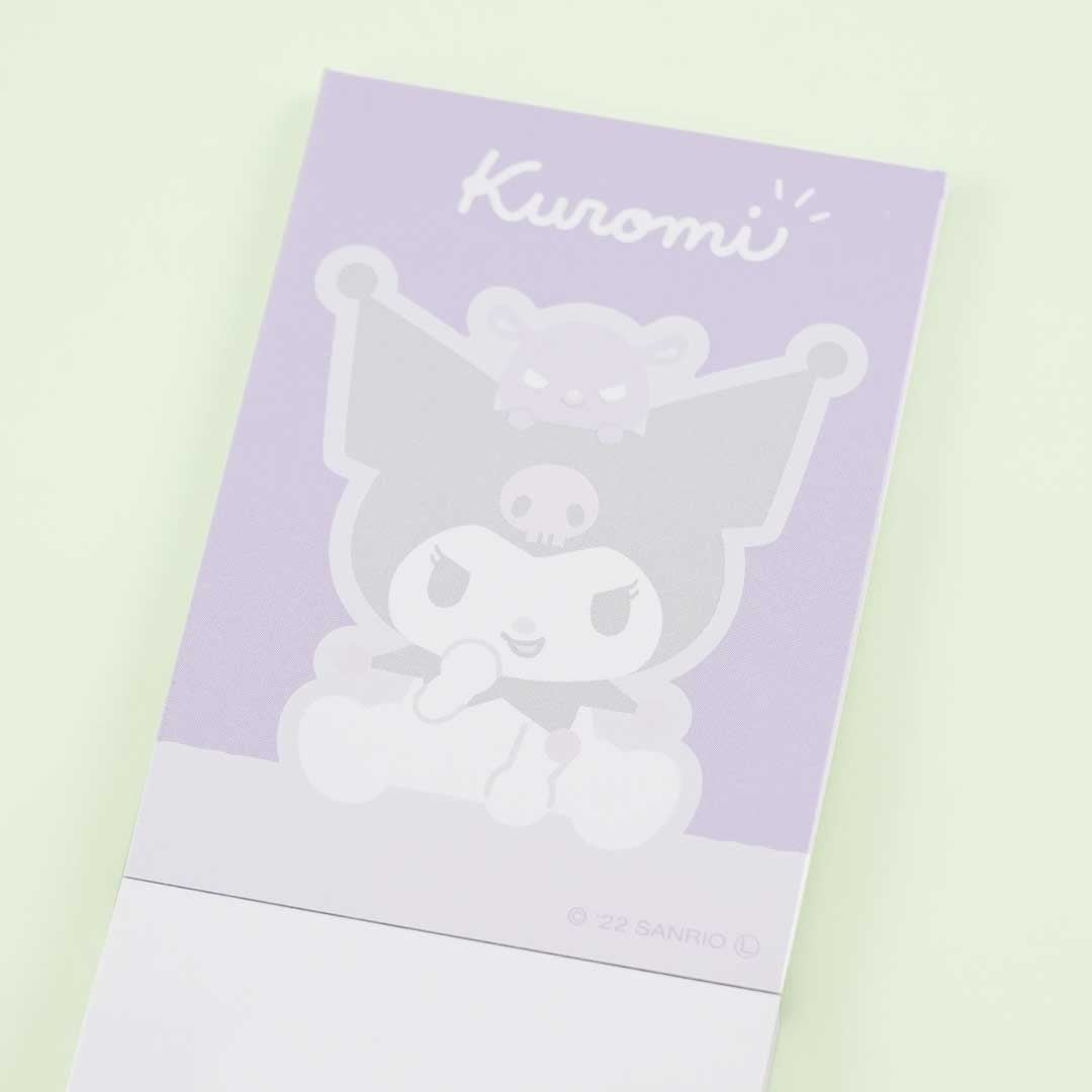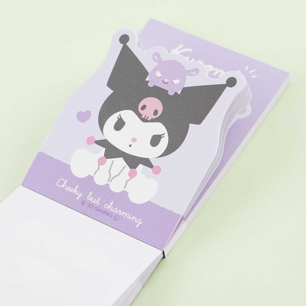 This cute die-cut memo pad is decorated with an illustration of Kuromi. Use it to write quick reminders. There are two different sheet styles in the pad.
