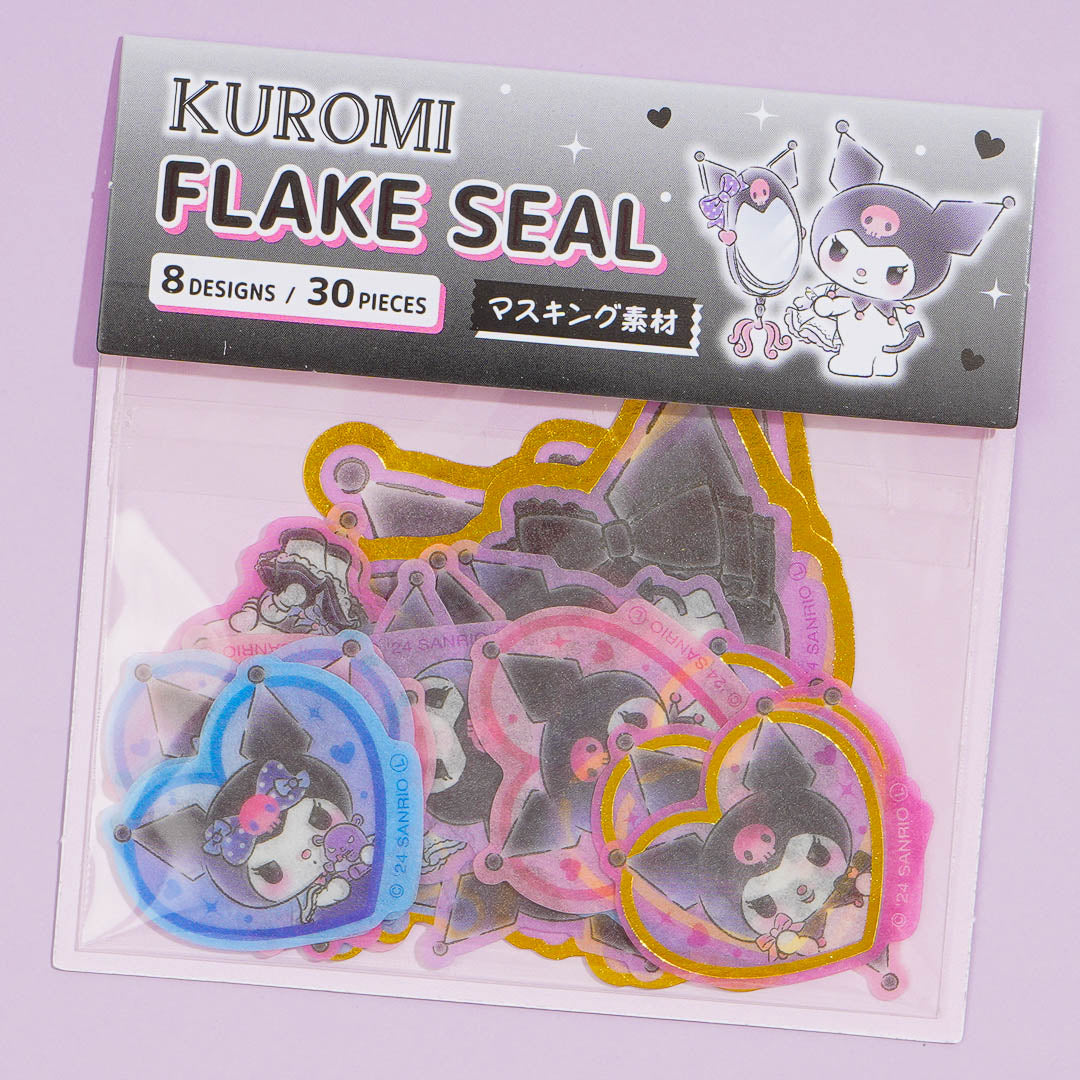 This cute pack of sticker flakes is the perfect addition to your kawaii stationery collection! It features die-cut, semi-transparent prints of Kuromi looking like a gothic doll.