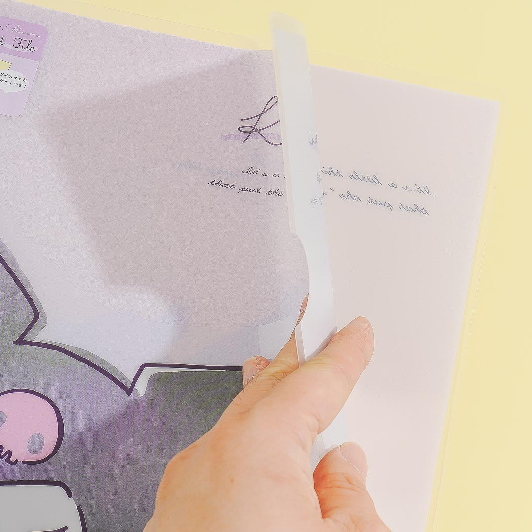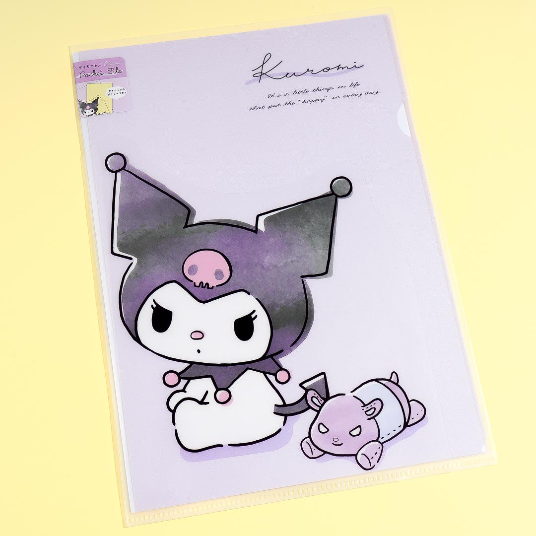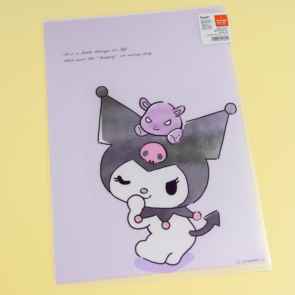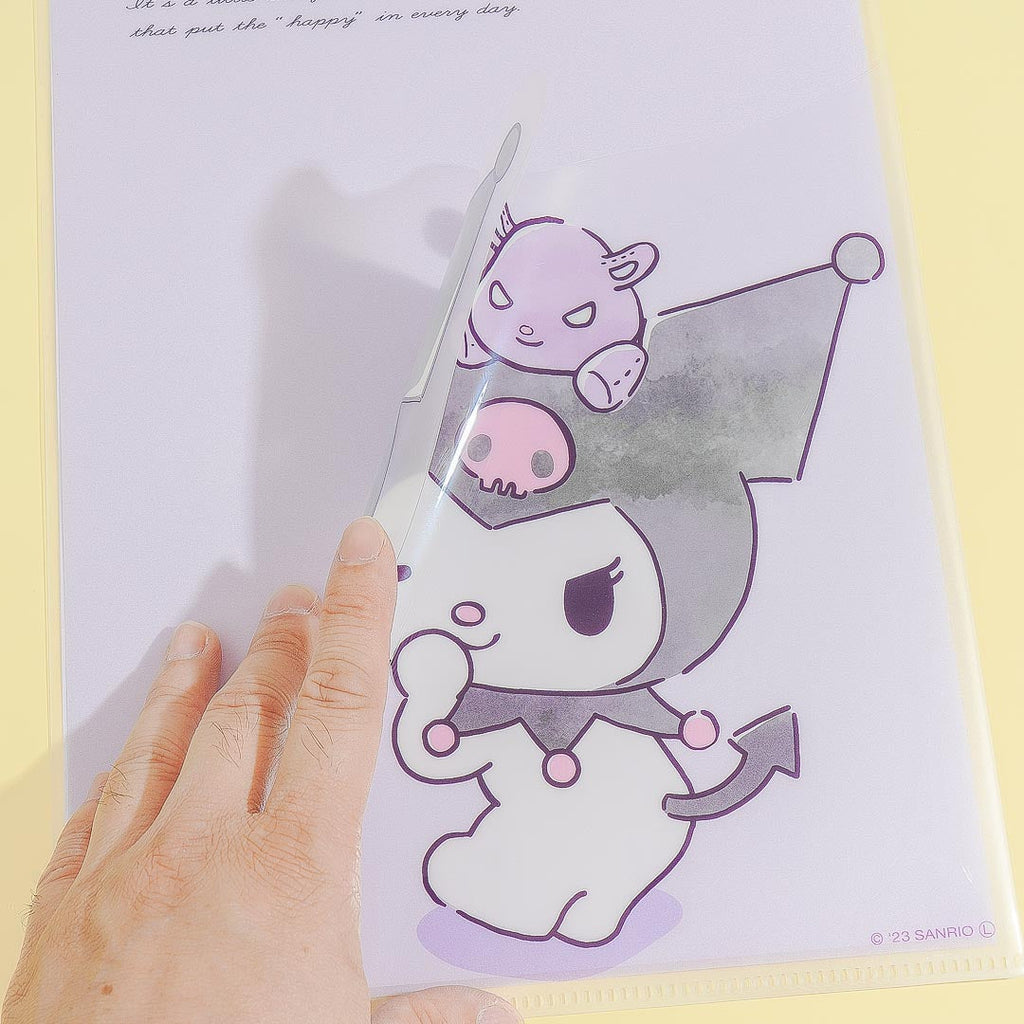 Add this super kawaii file folder to your school supply haul! It features prints of Kuromi hanging out with her friend Baku. This folder has a nice matte surface and it has three different pockets for you to use.