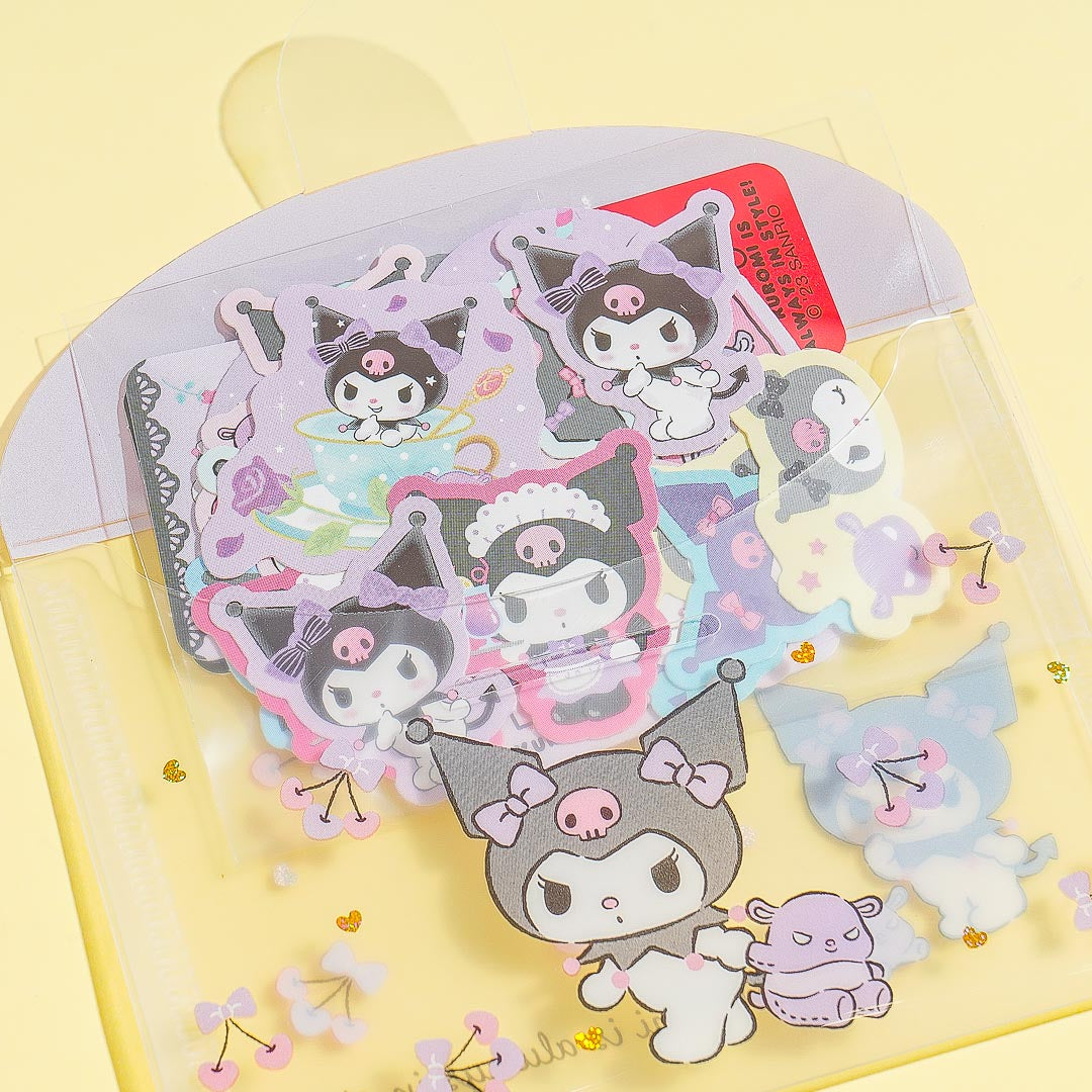 This sticker set showcases Kuromi having a good time playing around! Use it to decorate your journal cover. It comes with a nifty case that you can keep stickers in!