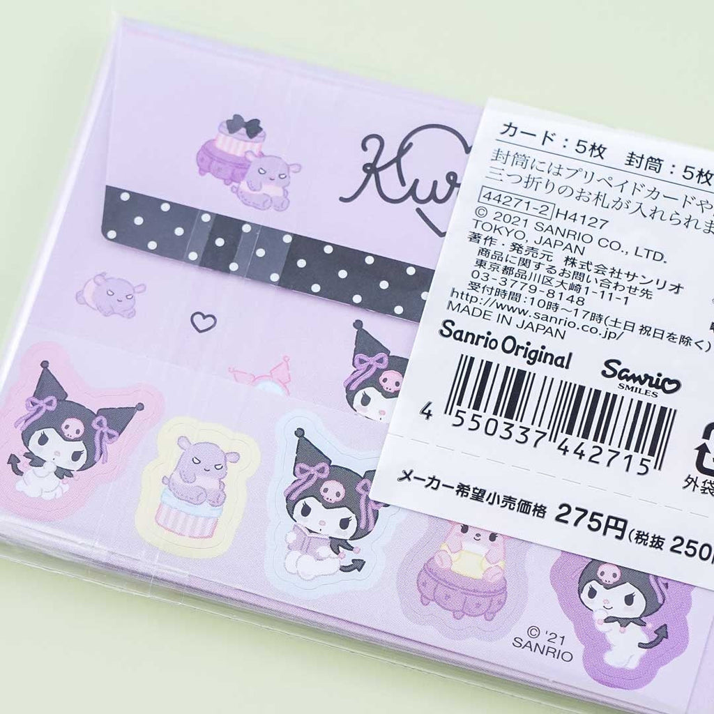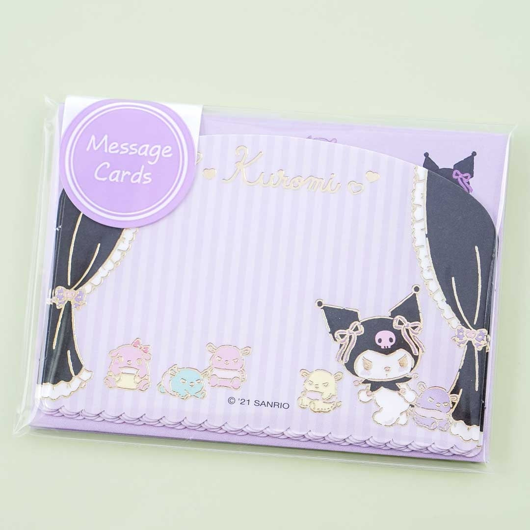 A kawaii message card set featuring Kuromi and friends on stage