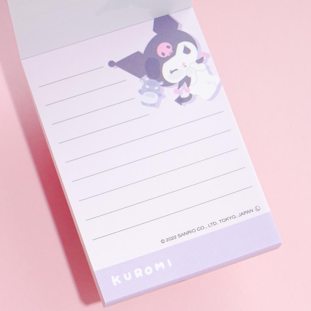 Keep track of all the things you need to do by writing reminders on this kawaii memo pad. It showcases a print of a winking Kuromi! This memo pad is the perfect addition to your stationery kit.