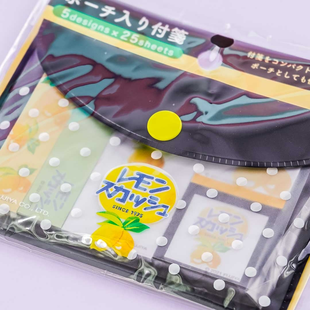 Use this set of cute sticky notes to make sure you keep track of important reminders! It features prints of the packaging design of Lemon Squash soda. They come with a cute pouch with a button closure!