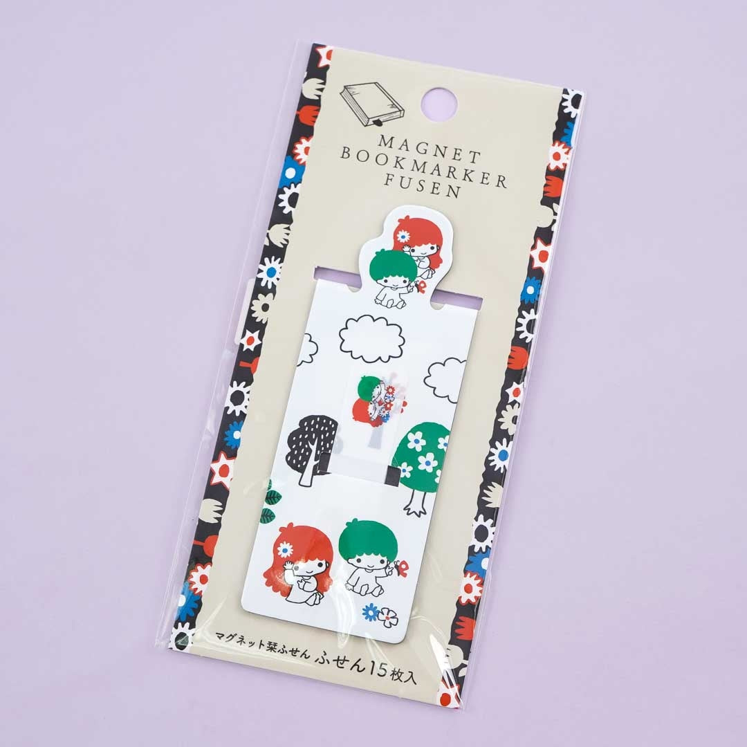 A cute set consisting of a magnet bookmark and sticky tabs with prints of the Little Twin Stars in the forest