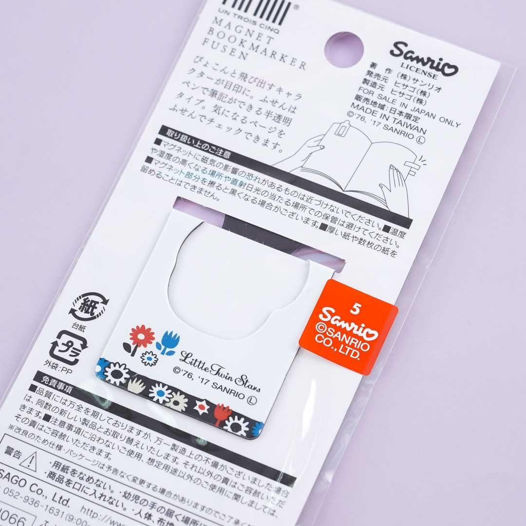 Use this kawaii set to keep track of important pages on your workbook! It comes with a matching magnet bookmark and a sheet of small clear film sticky notes featuring the Little Twin Stars playing in a forest.