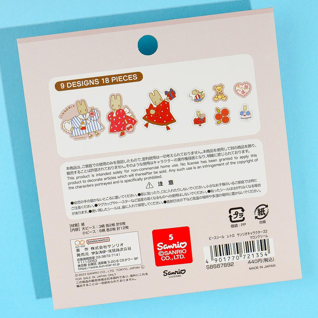 Decorate your albums and scrapbooks with these kawaii sticker flakes. They come from the second installment of the retro Sanrio character series features illustrations of Marron Cream.
