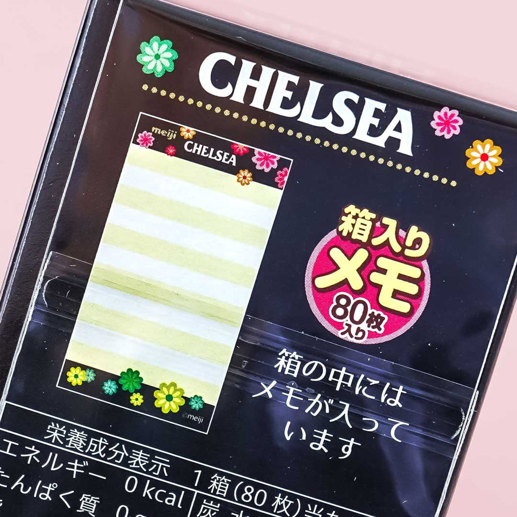 This kawaii memo pad features prints of Meiji's Chelsea Candy! It also comes in a box designed to look like the packaging of Chelsea Candy. Use it to write down important notes.