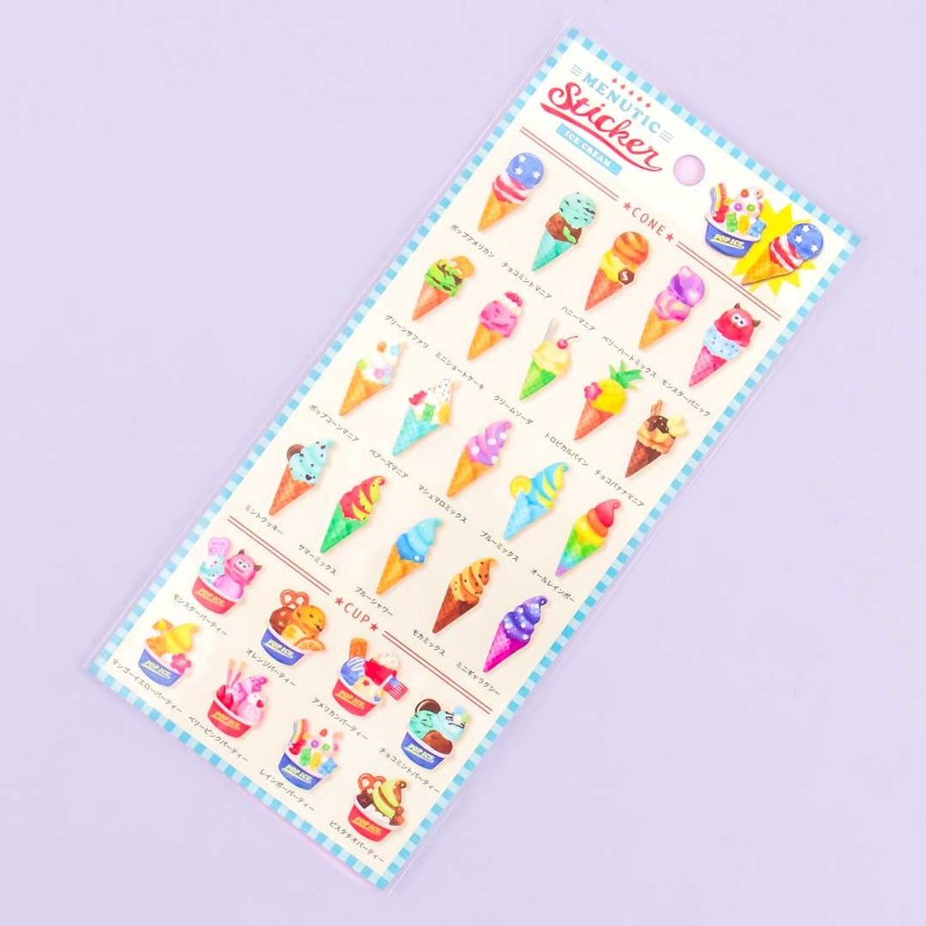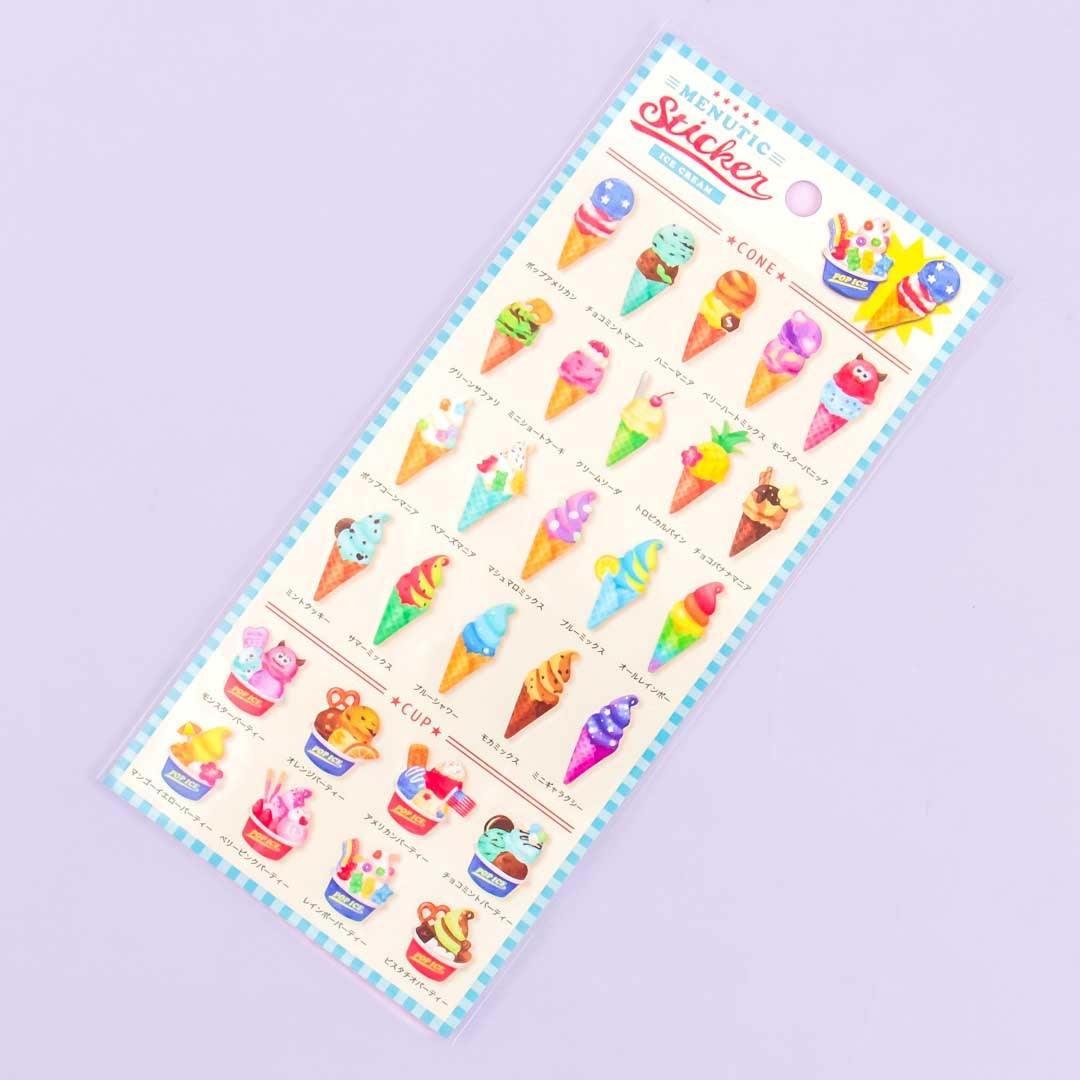 This super kawaii sheet of stickers made to look like a menu! It features different kinds of ice cream. Use these semi-transparent stickers to decorate your journal!