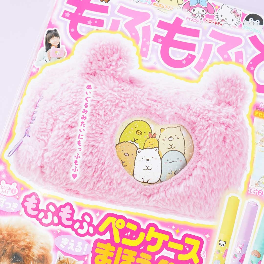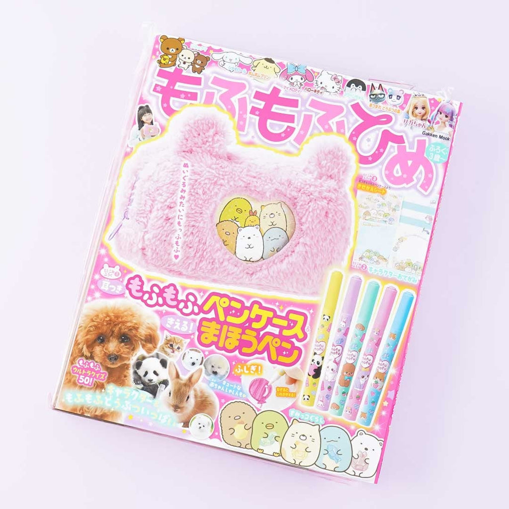 Have fun learning the secrets of cute animals with this Mofumofuhime magazine released in November 2021 in Japan featuring the Sumikko gang! This informative journal was supervised by Teruyuki Komiya who supervises the "Gakken Encyclopedia LIVE" series. It comes with letter paper illustrated with the characters from both Sumikko Gurashi and Sanrio that you can cut out and use to send sweet messages to your loved ones. It includes a fluffy pen case with a transparent heart-shaped window on the front showcasing different characters such as Rilakkuma, Sumikko Gurashi, Animal Crossing, and the like. Simply insert and replace the character sheets in the pen pouch. It also comes with a set of disappearing magic pens. The ink mysteriously disappears when you trace your writings using the white pen included in the set.