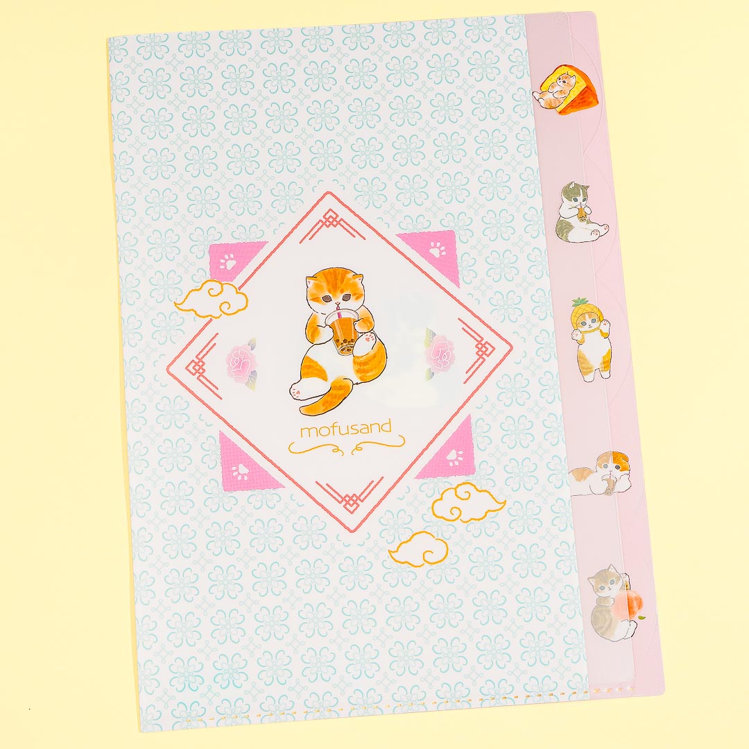 This super kawaii clear file folder showcases Mofusand kitties playing with food like milk tea, pineapple, and sandwiches. Use it to organize your documents! It has five pockets that you can use to sort your papers.