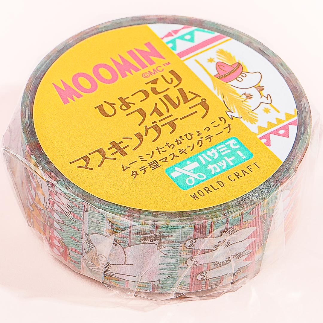 Add a dose of cuteness to your plain book covers by decorating them using this clear masking tape! This roll has kawaii vertical illustrations of Moomin characters and bright-colored patterns.