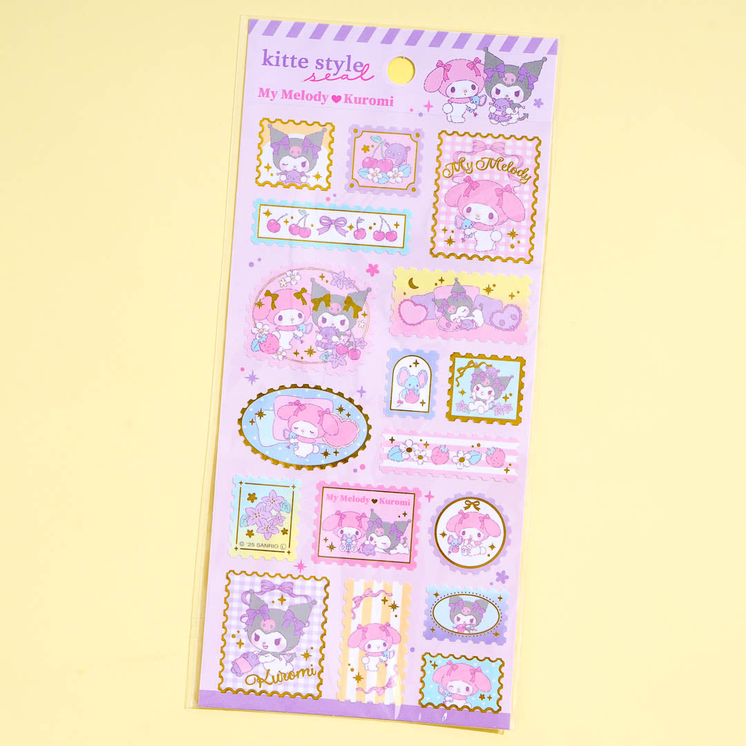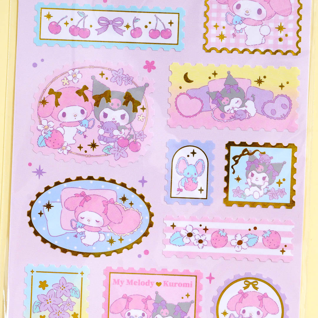 This super cute sheet of stickers features Kuromi and My Melody napping and playing around. Use these stickers to glam up your notebooks! You'll find lovely golden accents on these kawaii stickers.