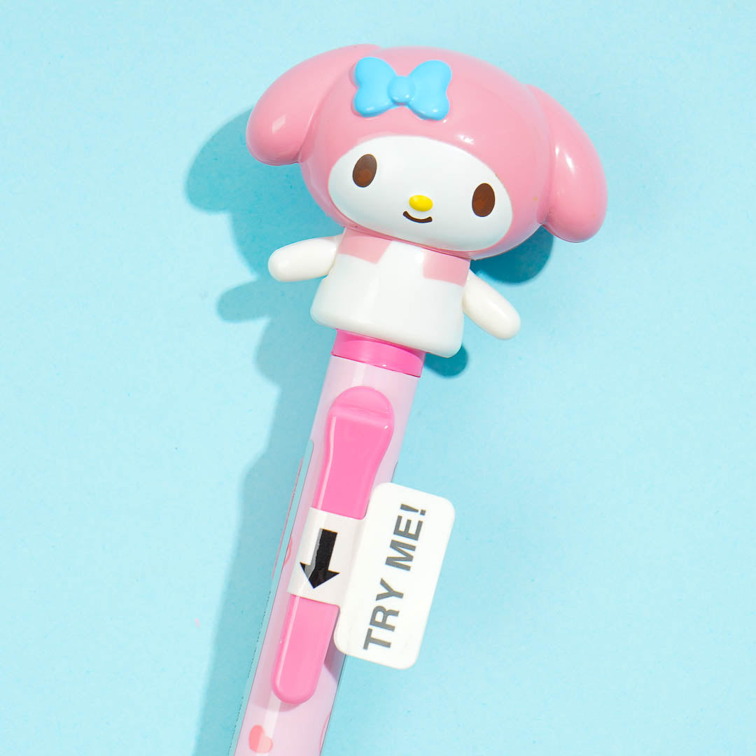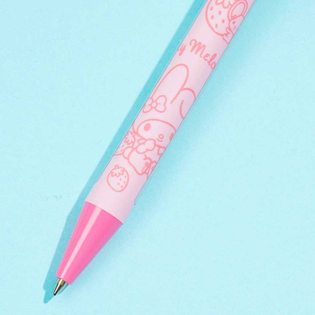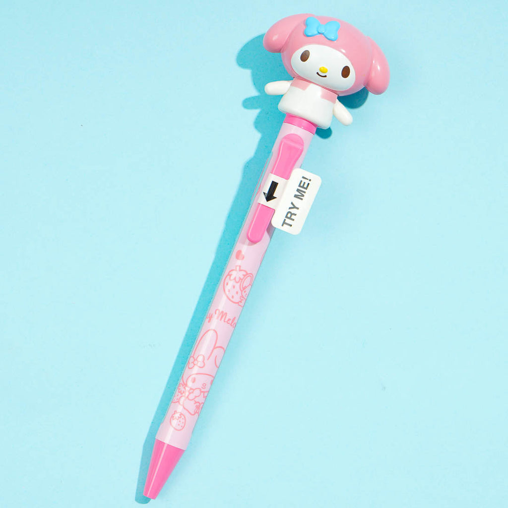 Have fun writing your notes with this super cute pen decorated with prints of My Melody and strawberries. It features a kawaii My Melody topper with arms that move up and down when clicked!
