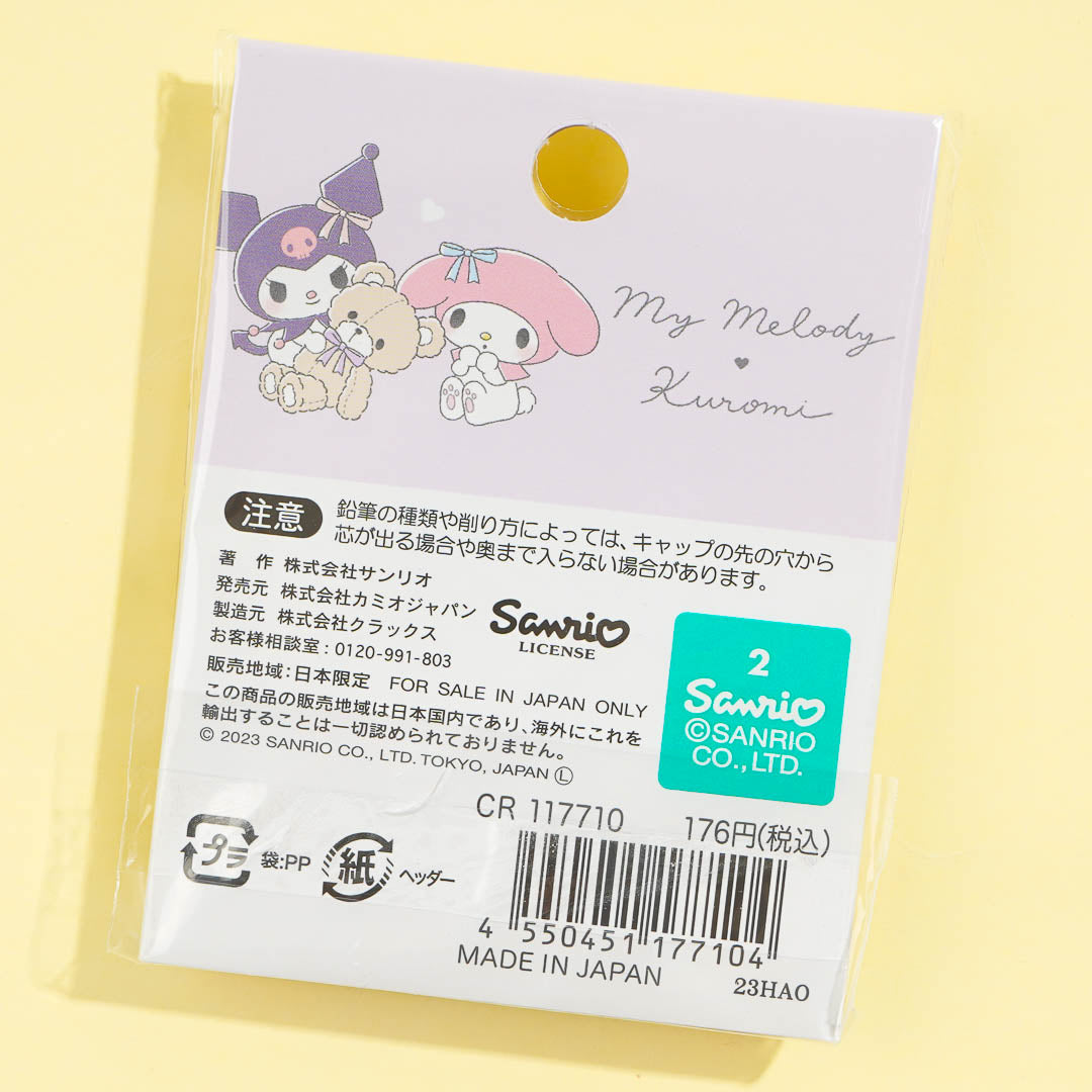 This set of kawaii pencil caps feature My Melody and Kuromi snuggling with their teddy bears! Use it to protect your pencil leads from breaking while inside your bag.