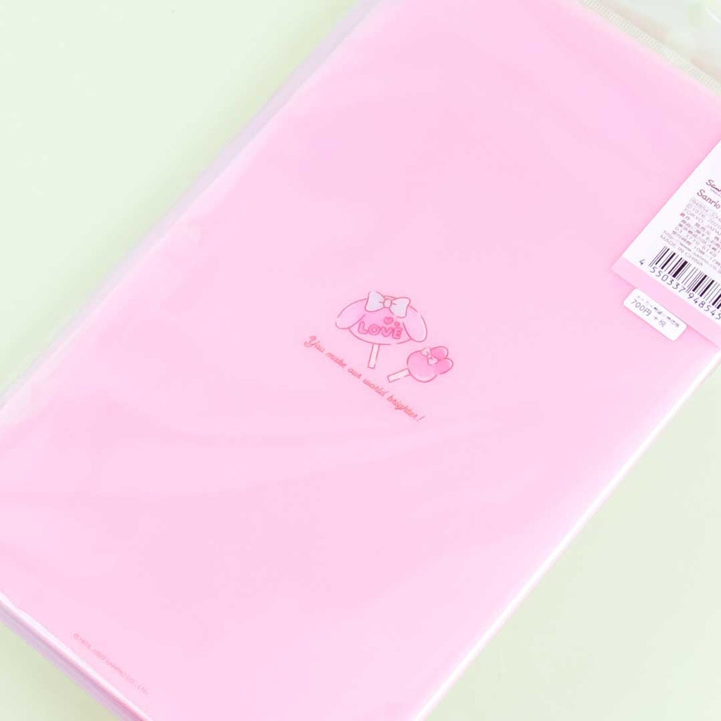 This super cute clear book folder has a cover illustrated with My Melody playing! Use it to store small documents.