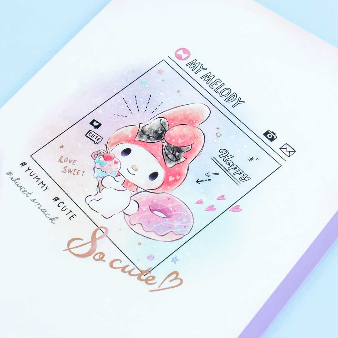 Enjoy writing in this super cute softbound notebook with Illustrations of My Melody, frappe, and a cake slice! It has grid lined pages that are perfect for drawing graphs.