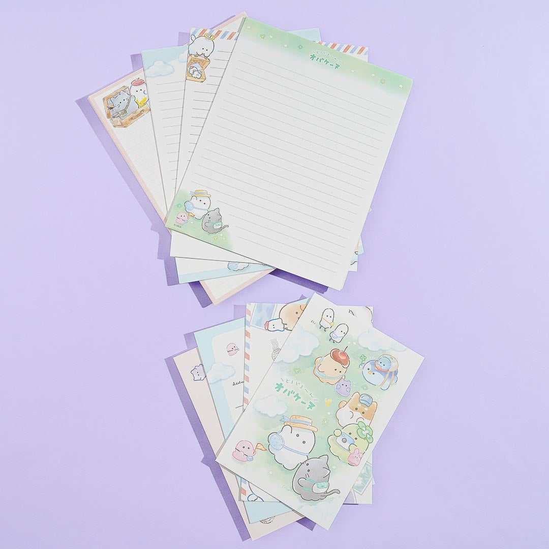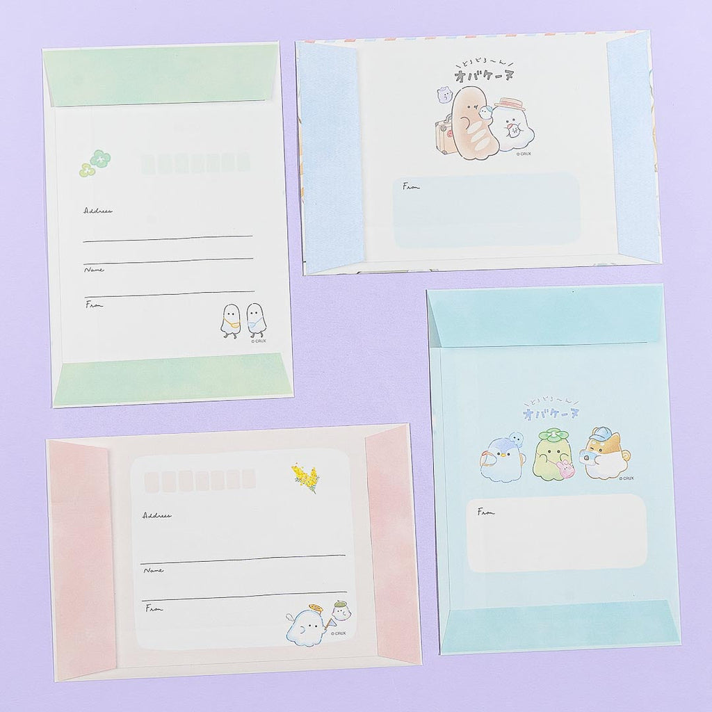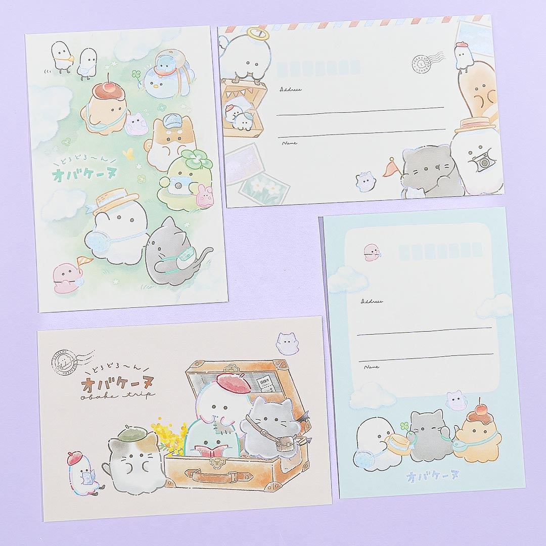 Create handwritten party invites by using this super cute letter set! It includes sheets and envelopes with various prints of Obakenu ghosts happily playing in a garden.