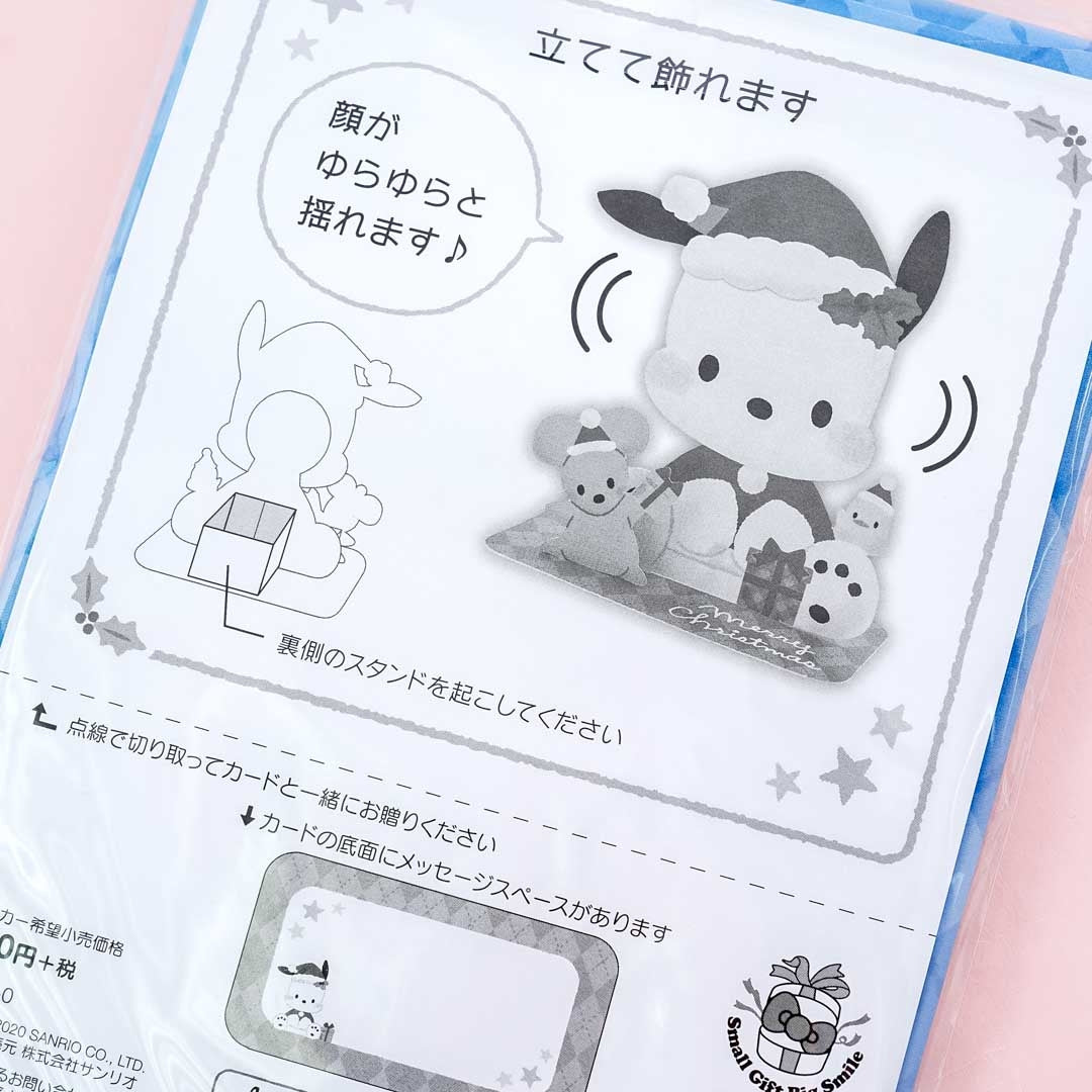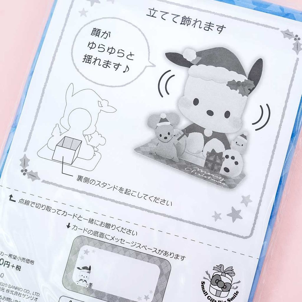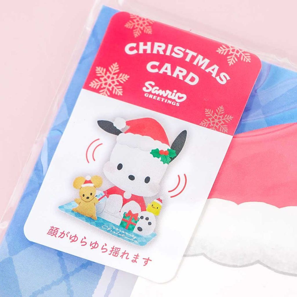 A kawaii Christmas card featuring a print of Pochacco dressed for the holidays