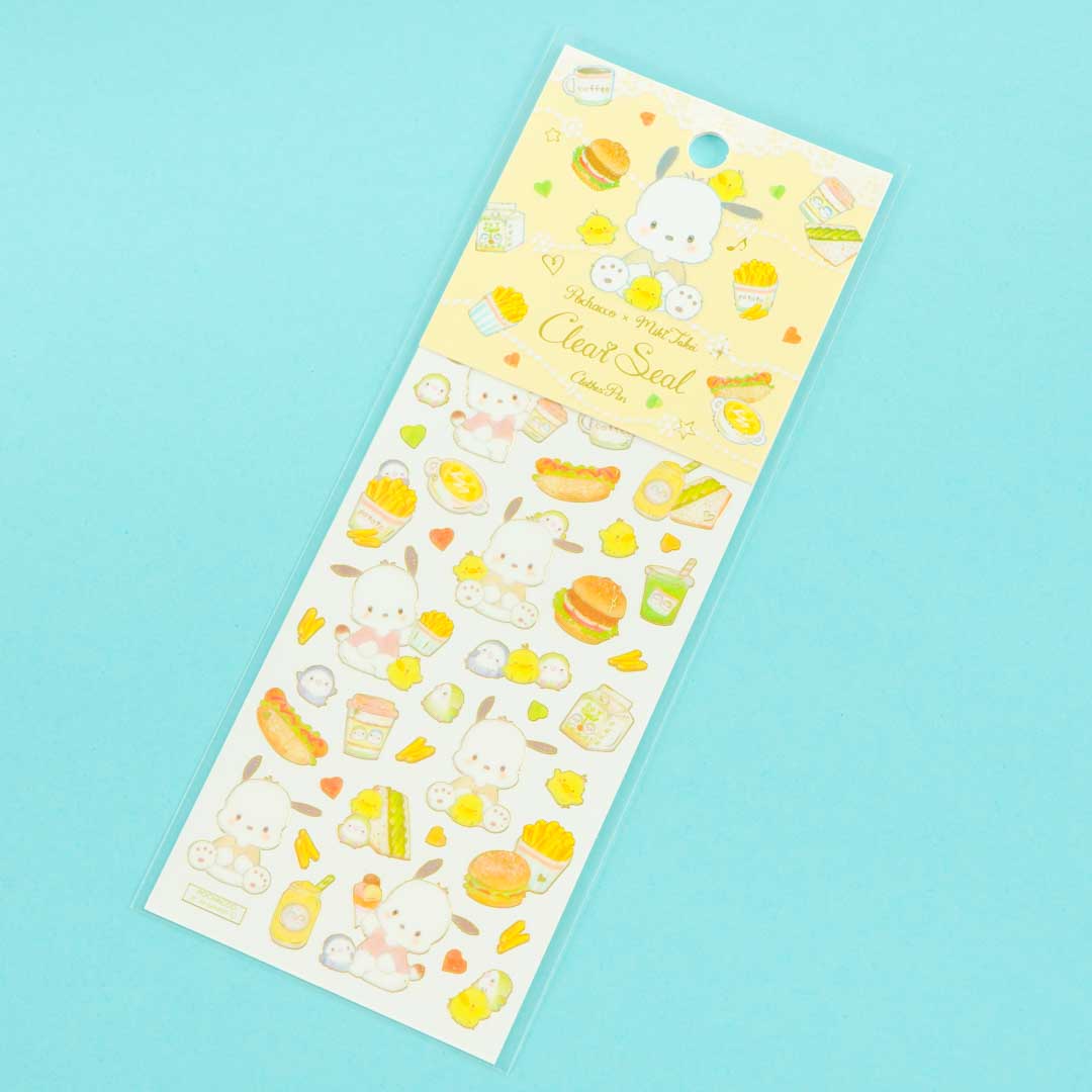 Decorate your journal with these kawaii die-cut stickers! The sheet features prints of Pochacco, burgers, fries, and other food! These illustrations were created by Japanese artist, Miki Takei. Each sticker has gold foil detailing.