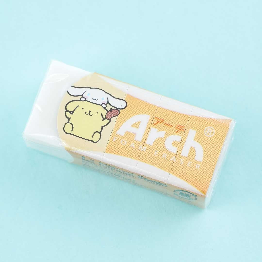 This cute eraser is made of a unique plastic foam material that is not prone to too much breakage compared to a regular type! Use this to clean your drawings from unnecessary pencil marks! This eraser also comes with a perforated arched cardboard case with prints of Pompompurin and Cinnamoroll.
