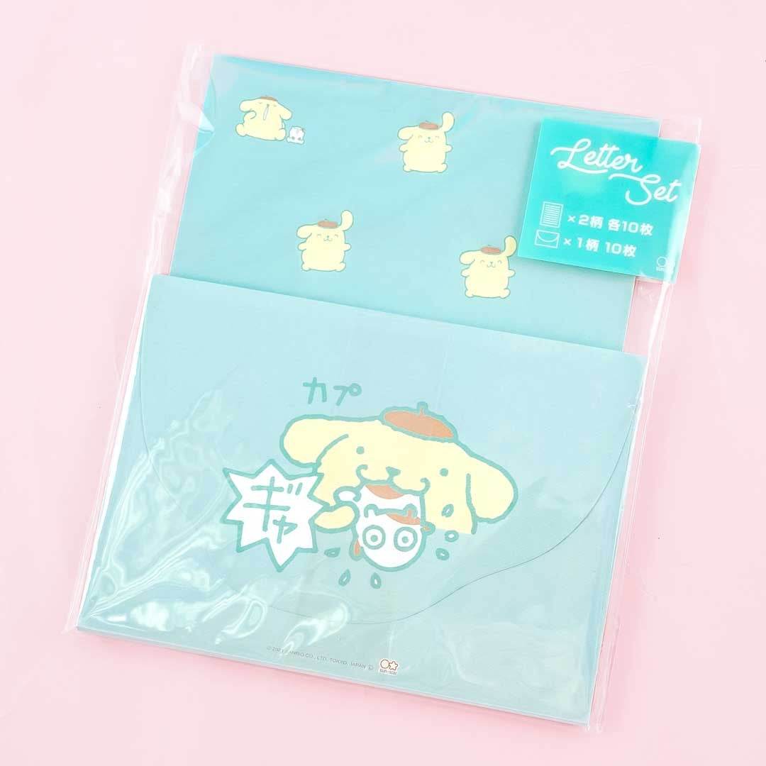 A super cute letter set with funny prints of Pompompurin mistakenly trying to eat Muffin