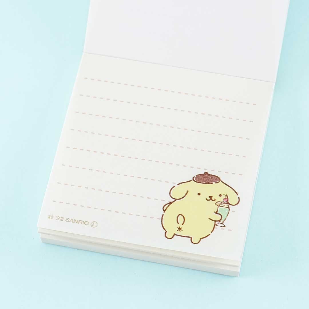 Use this mini-sized memo pad when you wish to leave a short yet important reminder! It has lined sheets and blank pages with various designs. This super cute notepad features an illustration of Pompompurin enjoying his ice-cream dessert.