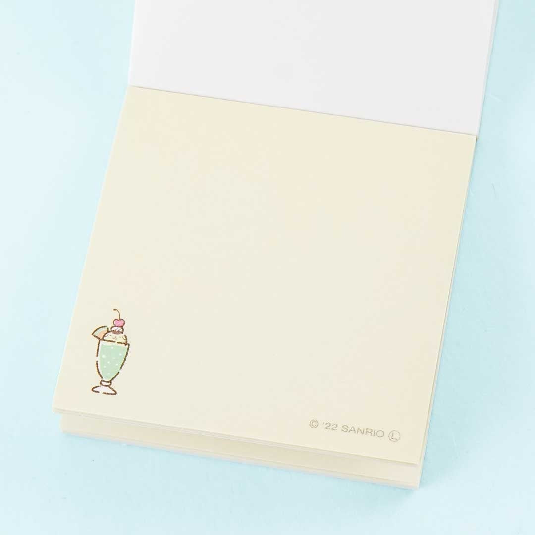 • A kawaii notepad printed with Pompompurin holding a glass of ice cream