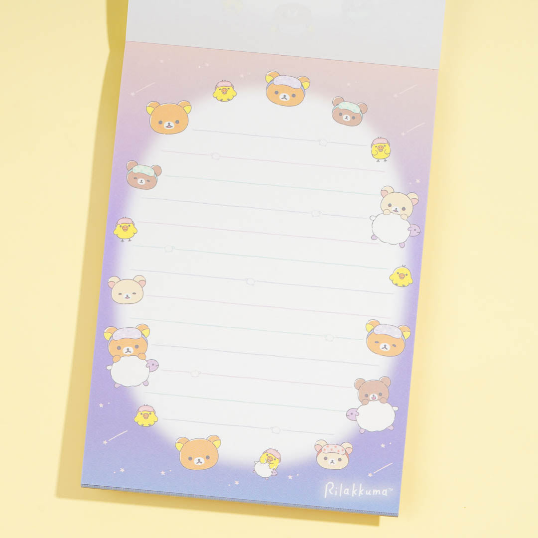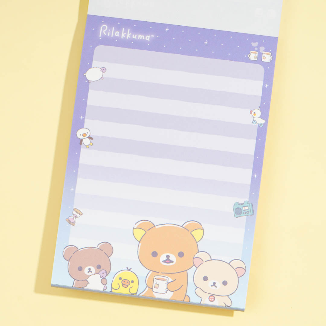 Write short notes on this super cute notepad featuring prints of sleeping Rilakkuma and friends.