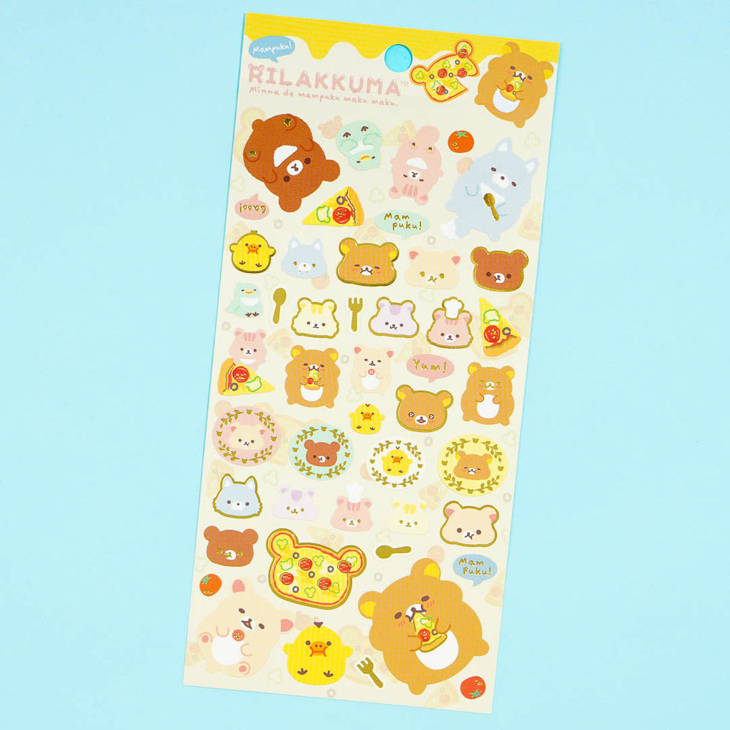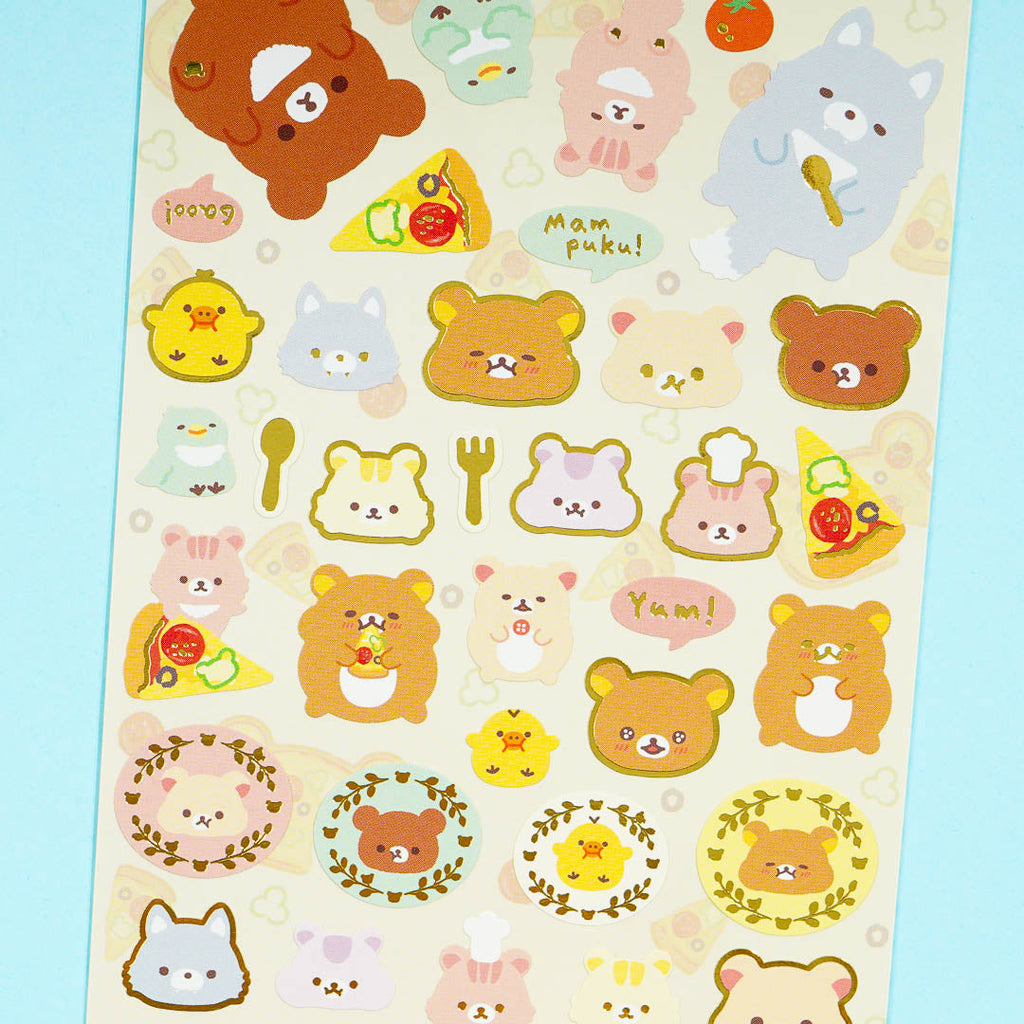 This super kawaii sheet of stickers showcases Rilakkuma and his friends getting fat after eating too much at their pizza party. Use it to add a major dose of cuteness to your planner!