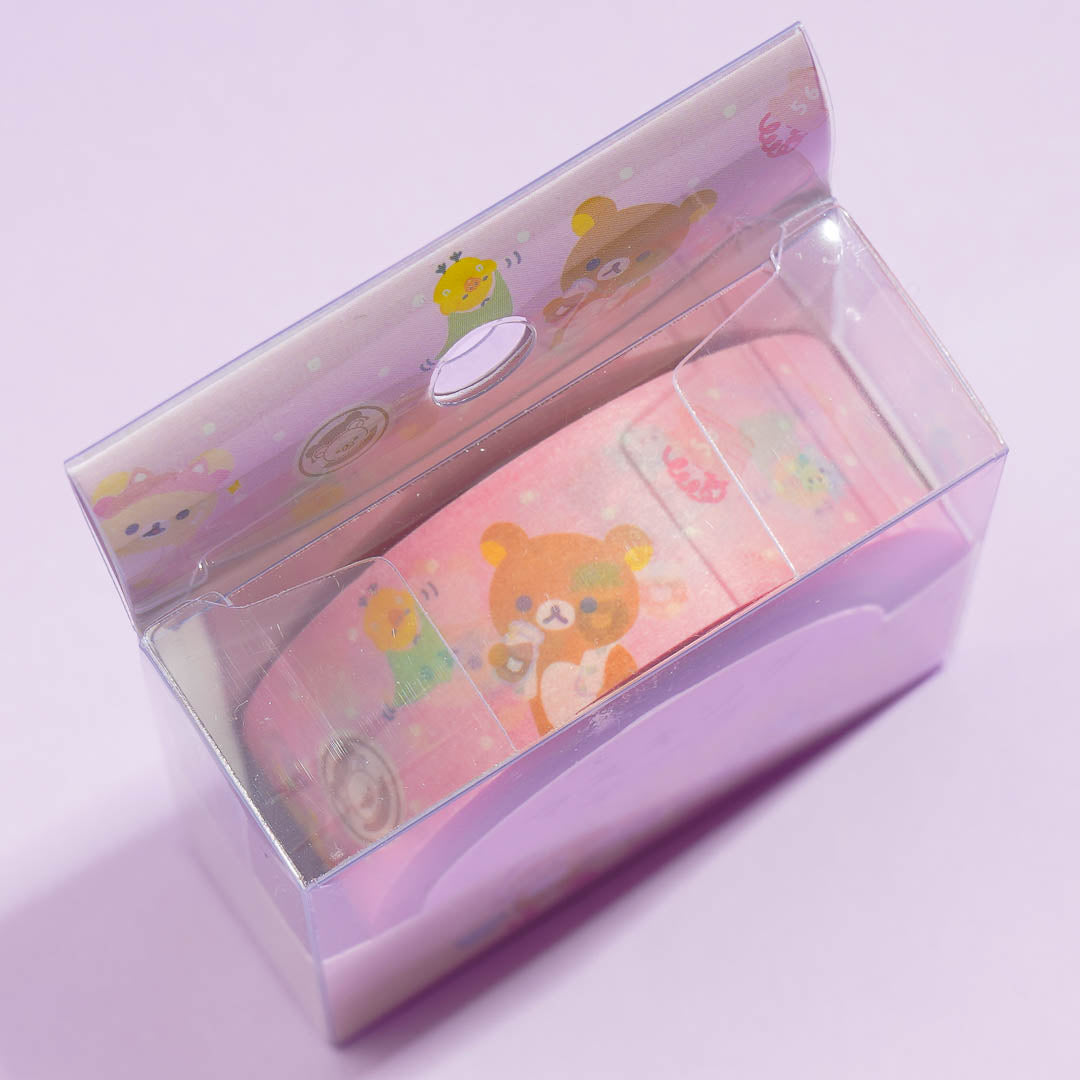 Enjoy decorating your presents using this glittery masking tape! This cute roll is filled with illustrations of Rilakkuma and his friends wearing kawaii cat headdresses.
