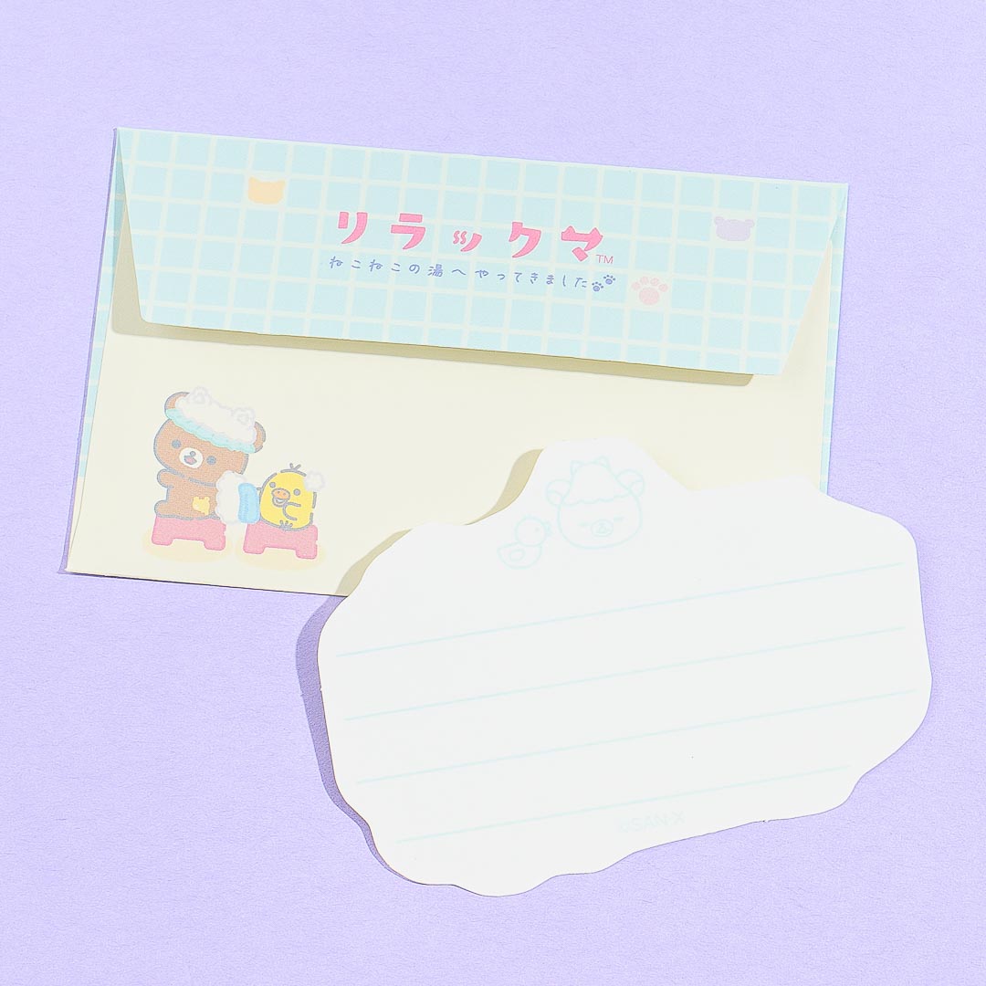 Send sweet messages to your friends using this uber-cute letter set! It features cute prints of Rilakkuma having a relaxing bath. This letter set even includes die-cut cards for your special greetings!
