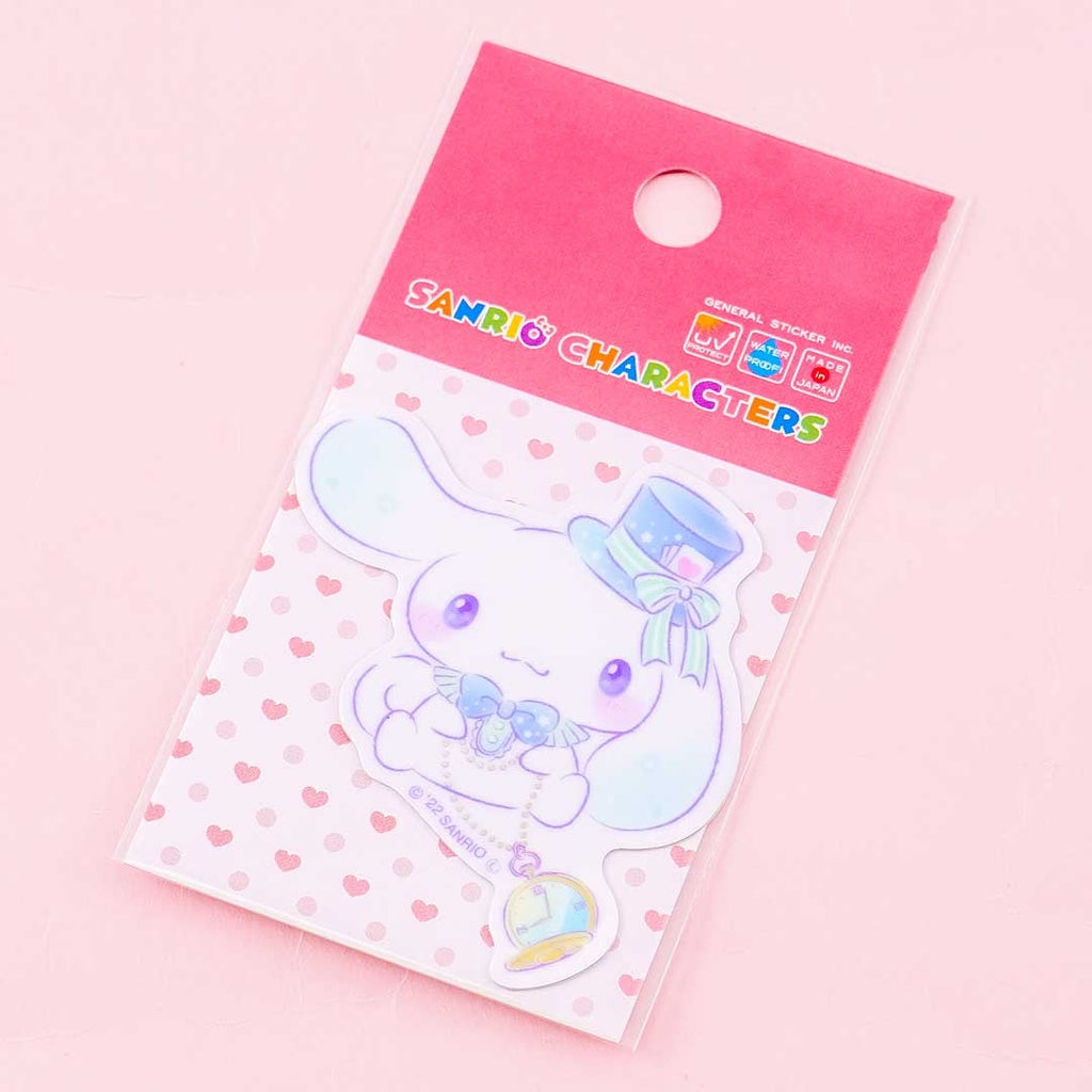 A kawaii die-cut sticker featuring Cinnamoroll as a magician