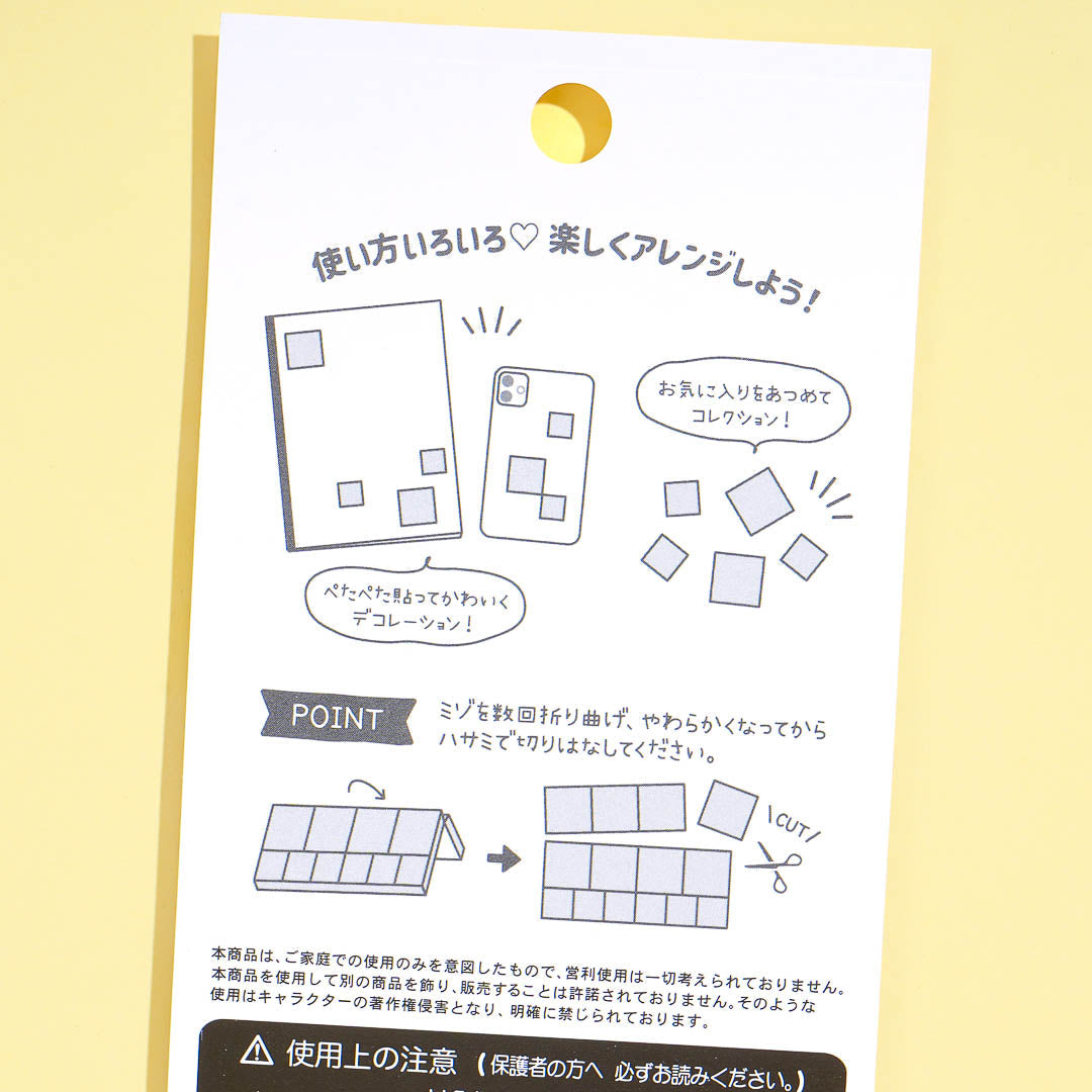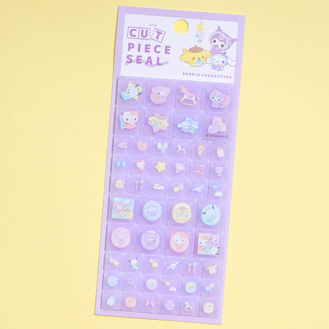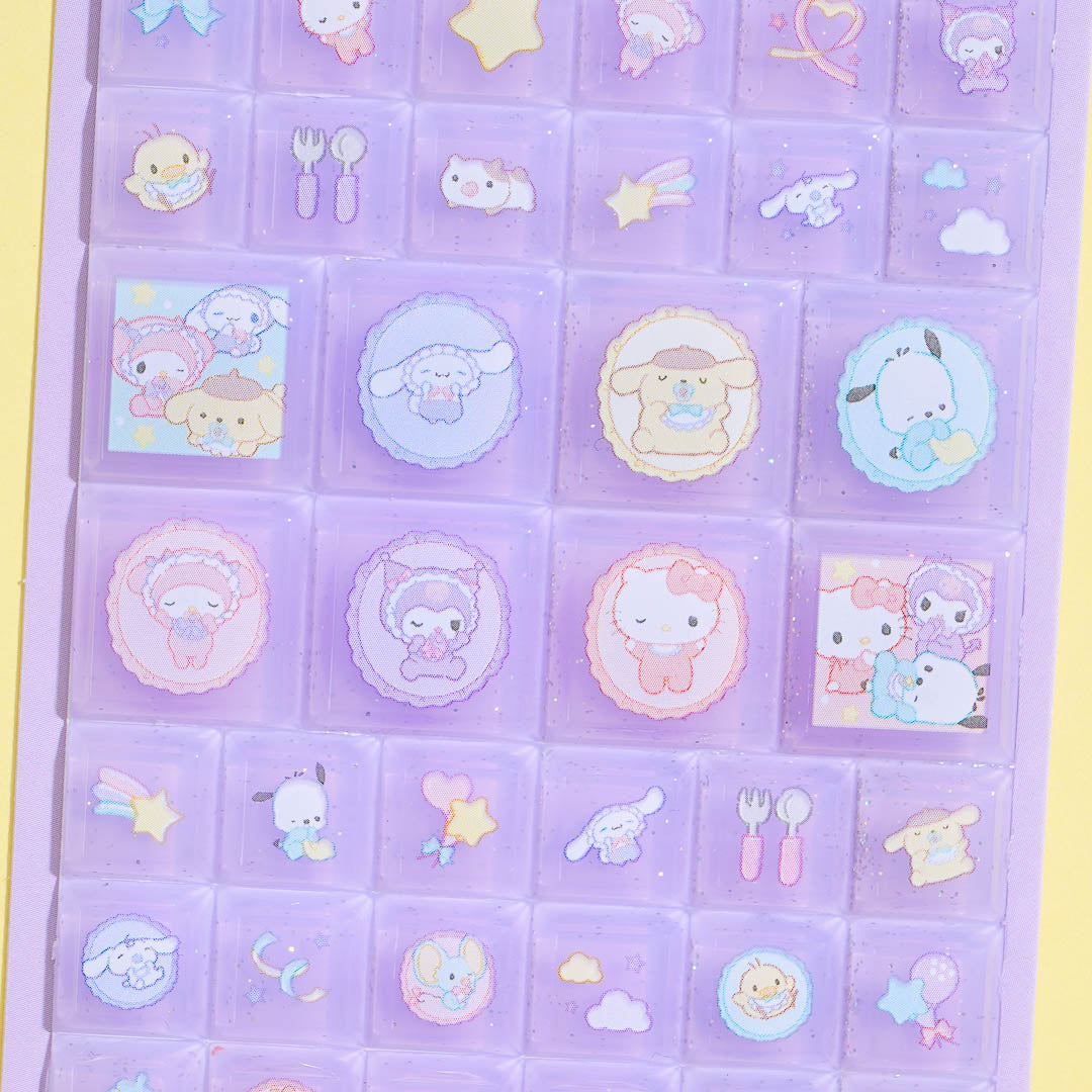 Decorate your notebooks and gadgets with these super cute tile stickers! Each piece features kawaii illustrations of Sanrio Characters dressed as babies and some baby accessories. Just cut along the groove to get a piece of sticker from the sheet!
