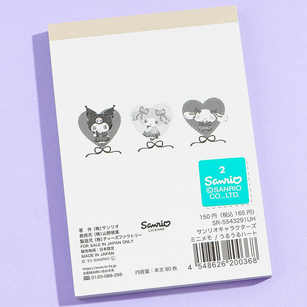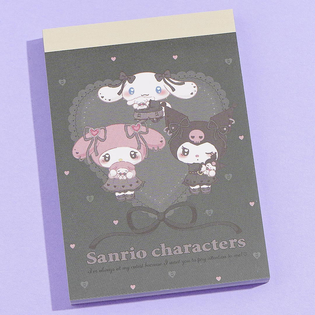 Jot down all sorts of notes and reminders on this super kawaii memo pad. This stationery item features pritns of Snario cuties like Kuromi, My Melody, and Cinnamoroll all dressed up as Gothic Lolitas!